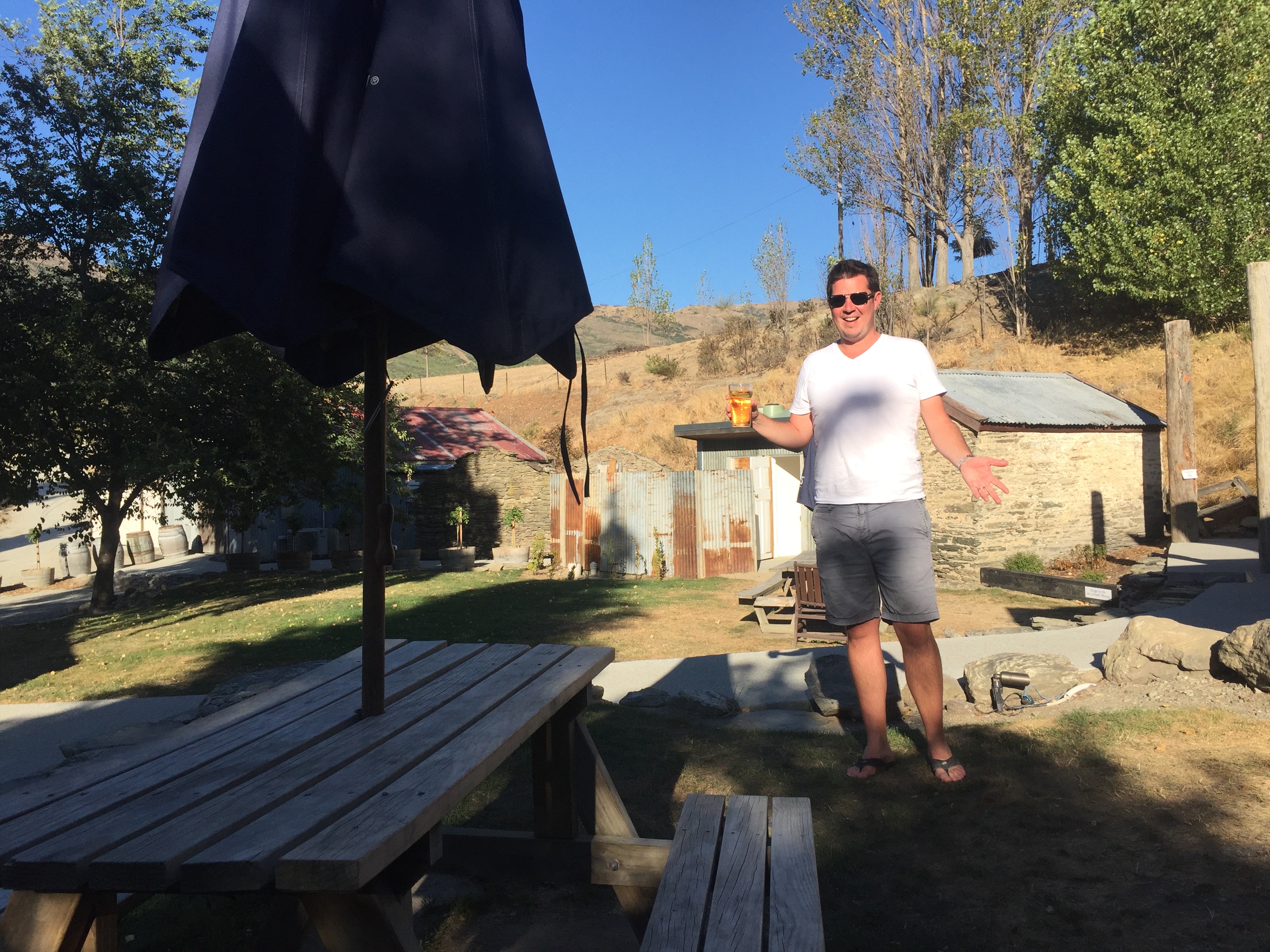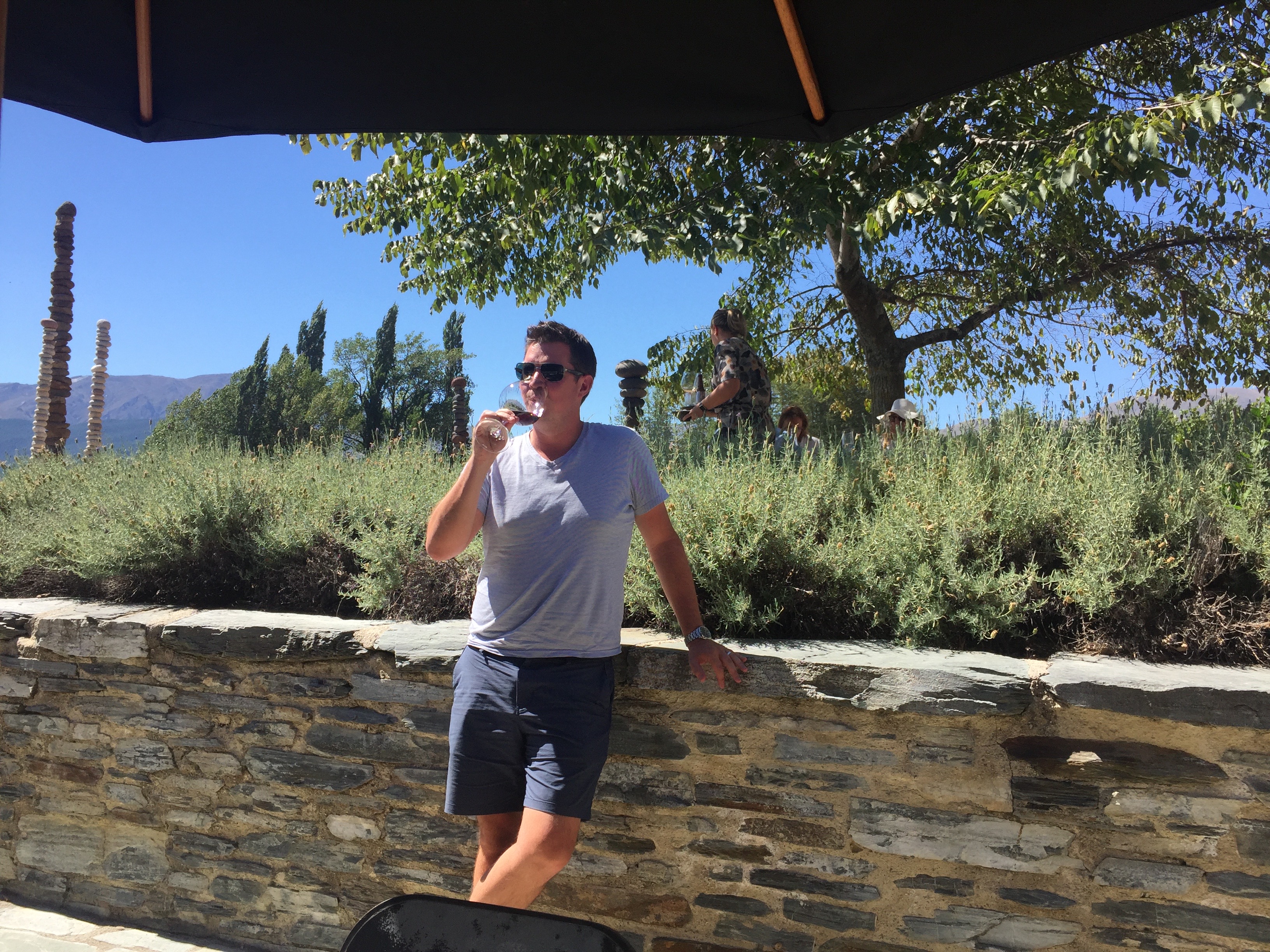 Following our time on Doubtful Sound we rented a small, stone guest cottage on a winery in the Gibbston valley, a picture pretty valley just outside of Queenstown. We went to the Gibbston wide renowned Tavern, sat on the grass outside our place watching the moon rise over the mountains and went cruisin’ down the highway in the hot, hot sun listening to “How Bizarre” and visiting the wineries. Wanna know the rest? Hey….buy the rights.