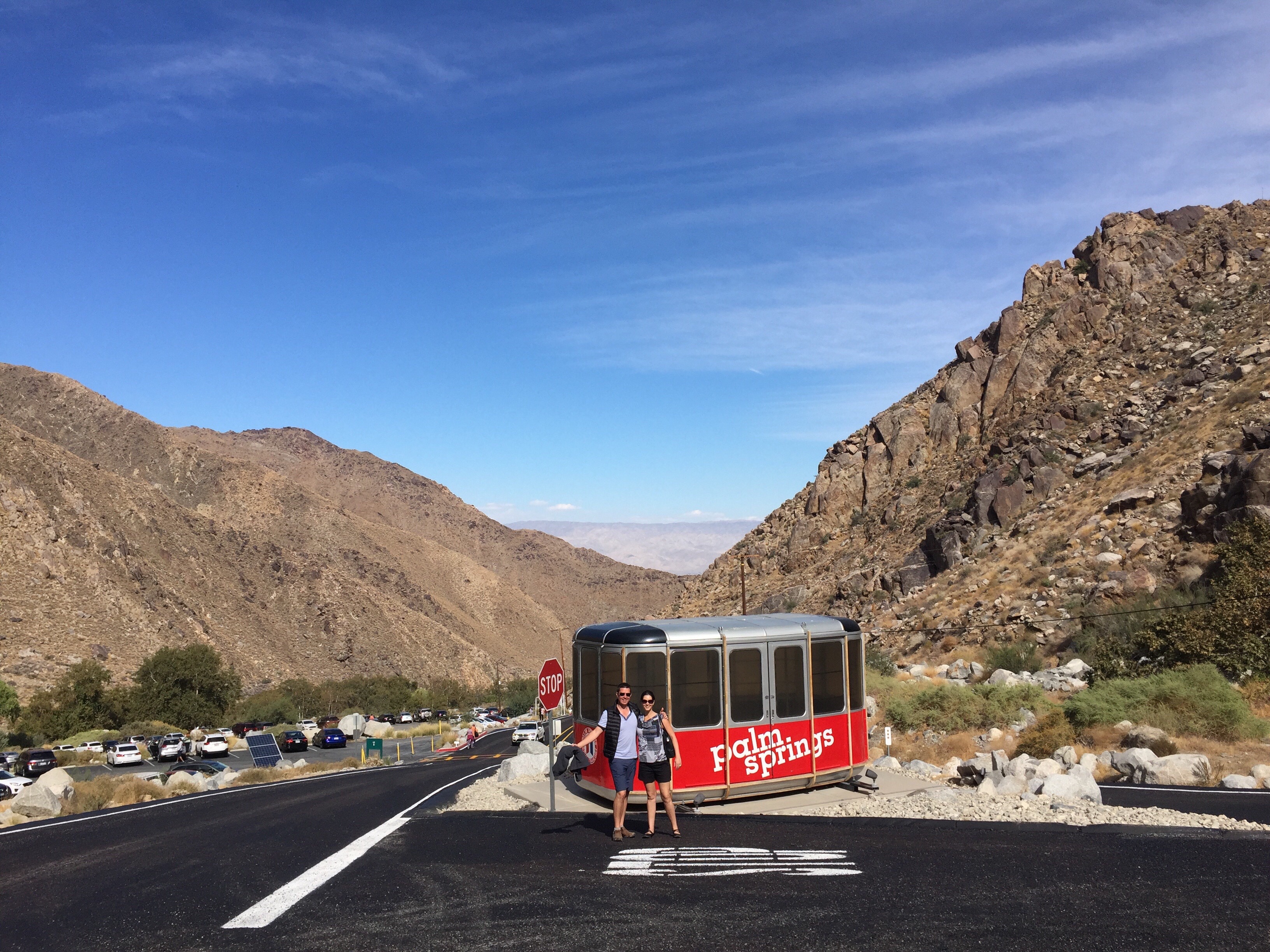 Palm Springs has an awesome aerial tramway that ascends <insert impressive number> feet up the <google name of mountain> mountain where you are in an almost Yosemite-ish park, full of lovely walks and campgrounds, but where, to our delight, you can also buy beers and just look at pretty stuff. Unfortunately, it might have been the bloody marys acting up, as James forgot his wallet (therefore license) for this 3 hour round trip, inducing an immediate panic attack whilst driving! Luckily the sight of a sunburned ‘man’ struggling to breathe and stick to the right (both correct and spacially) side of the road in a black convertible Mustang with the top down loudly playing <insert USA based song like ‘Born in the USA’> didn’t attract the attention of the authorities. It’s enough to make you wander what is ‘probable cause’…right?? That high from that bit of luck was short lived, as while waiting for a wings order and having a beer, James was carded (sans wallet).