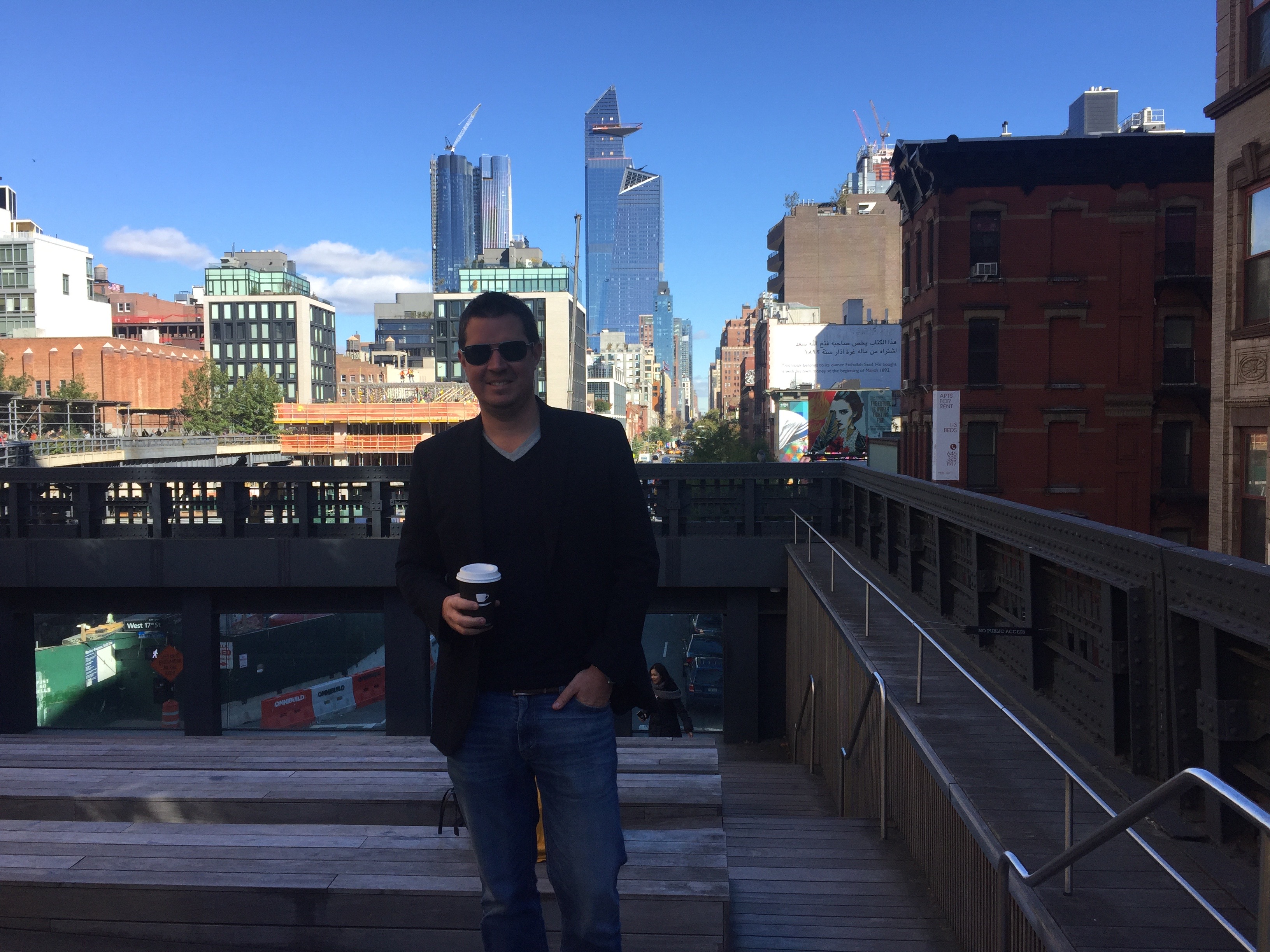 Desperate to fit in after struggling in Montreal we went straight to the most touristy place we could find, the Terroir bar on the high-line! An amazing spot to sit and watch the sun set over lower Manhattan and New Jersey. Having had some communication issues in NY NY last time (the “hard cider” v “hot cider” incident of 2013), James jumped into his first order with confidence, “one 5 brothers lager please!!!!”. “Ummmm….Do you mean the 5 boroughs lager…sir??” May as well have been wearing a fanny pack.