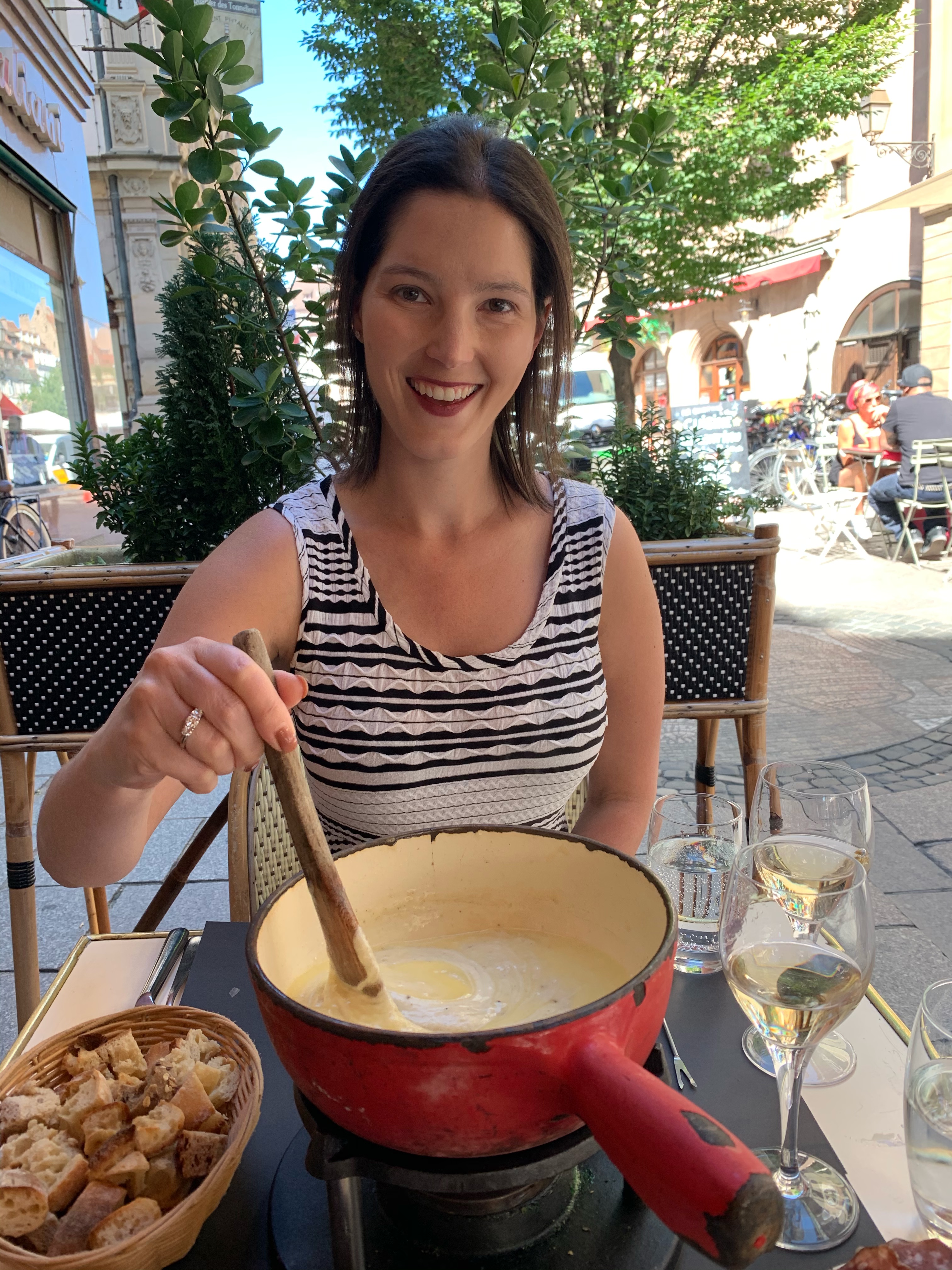 The next day was our first full day in France, Strasbourg, and quelle surprise, also the first “full cheese day“…and first day of James implementing his highly developed bowel management strategy. The first part of the plan involved skipping breakfast (apart from mimosas…it is France still) and heading straight to the all you can eat fondue lunch. After “sharing“ a few fondues (and prospective tears for the following morning), Lea was keen to visit the neighbouring cheese shop to invest in dinner. Does this seem like a girl who had ALL the cheese she could eat??