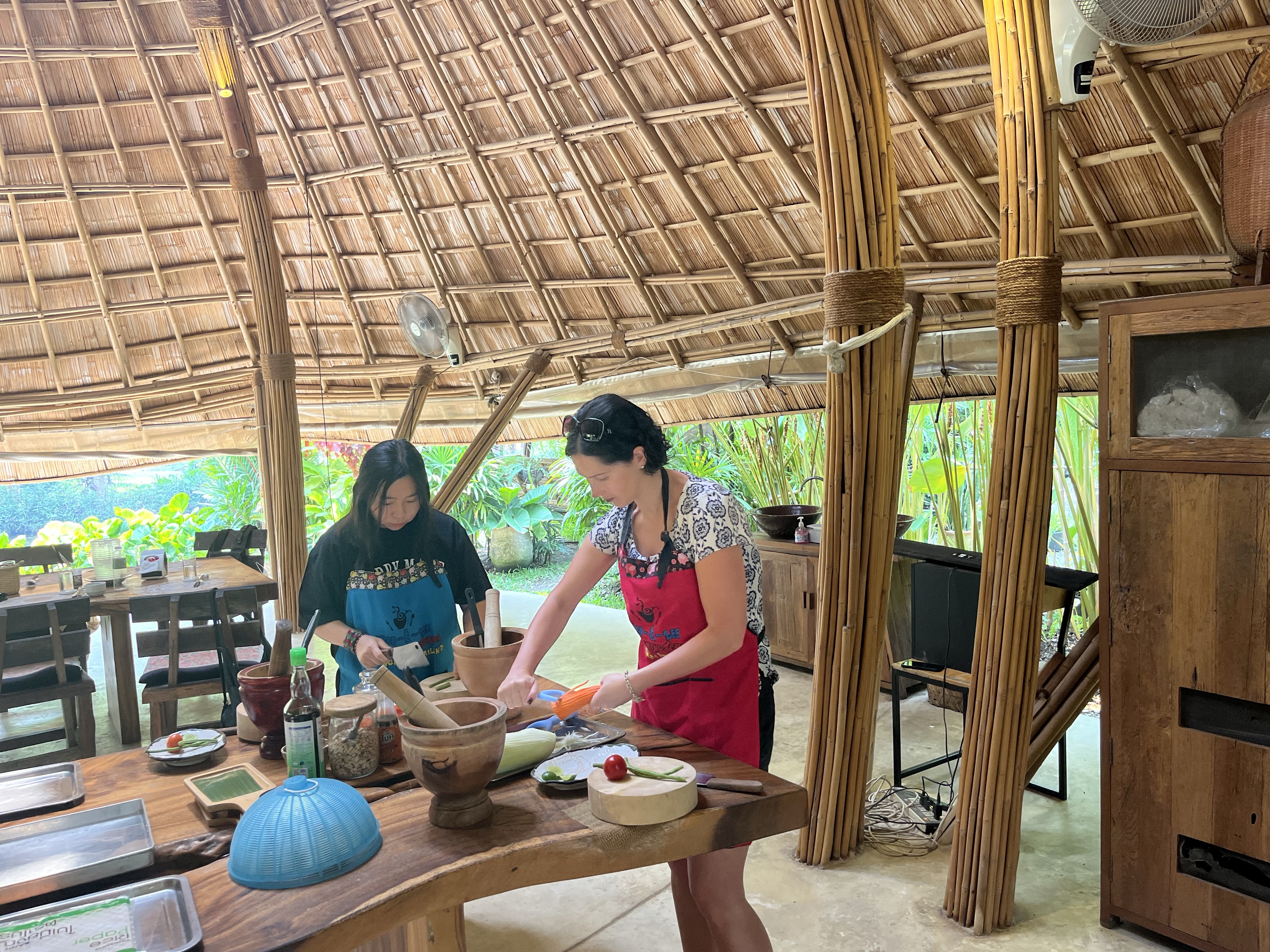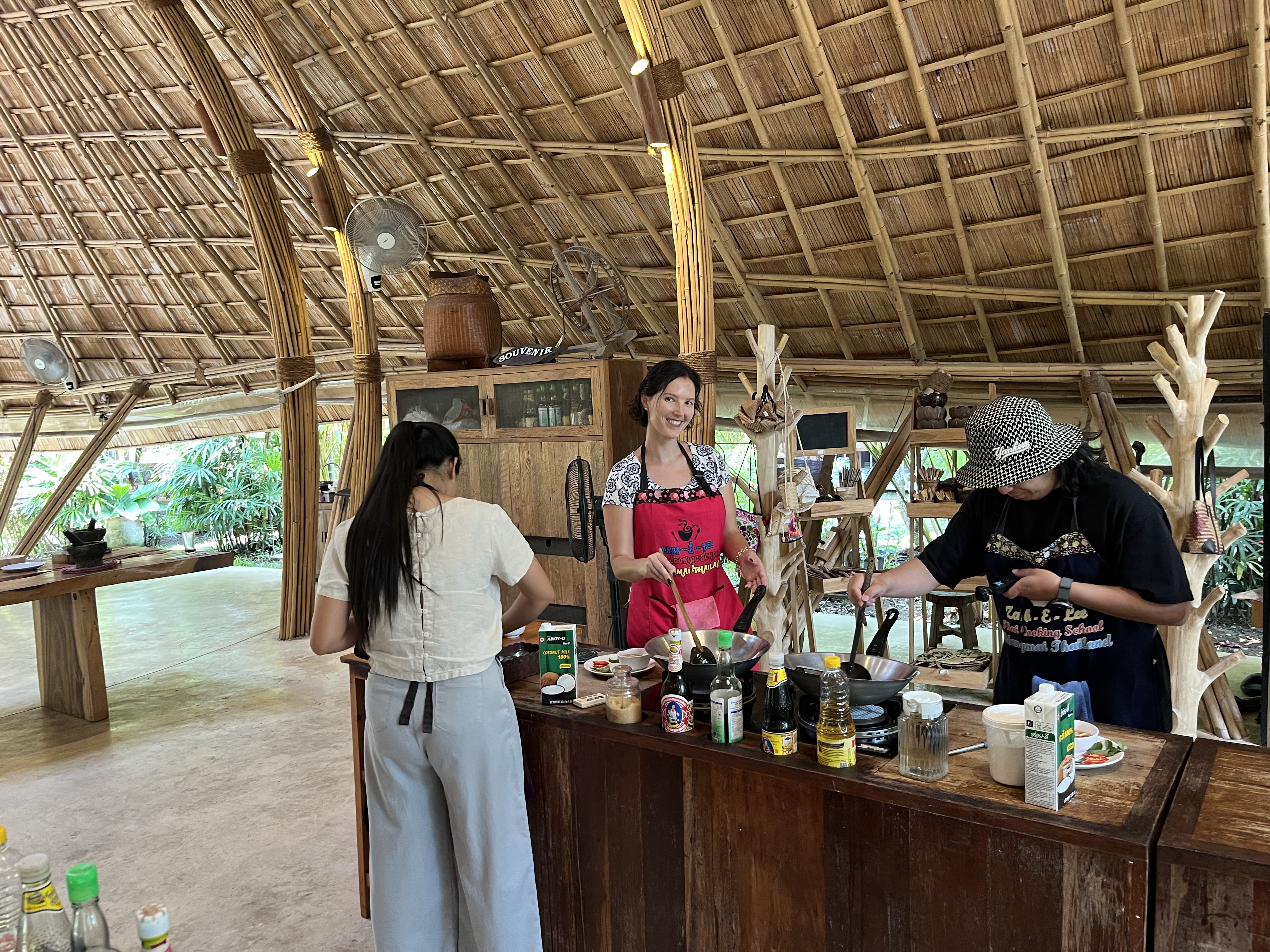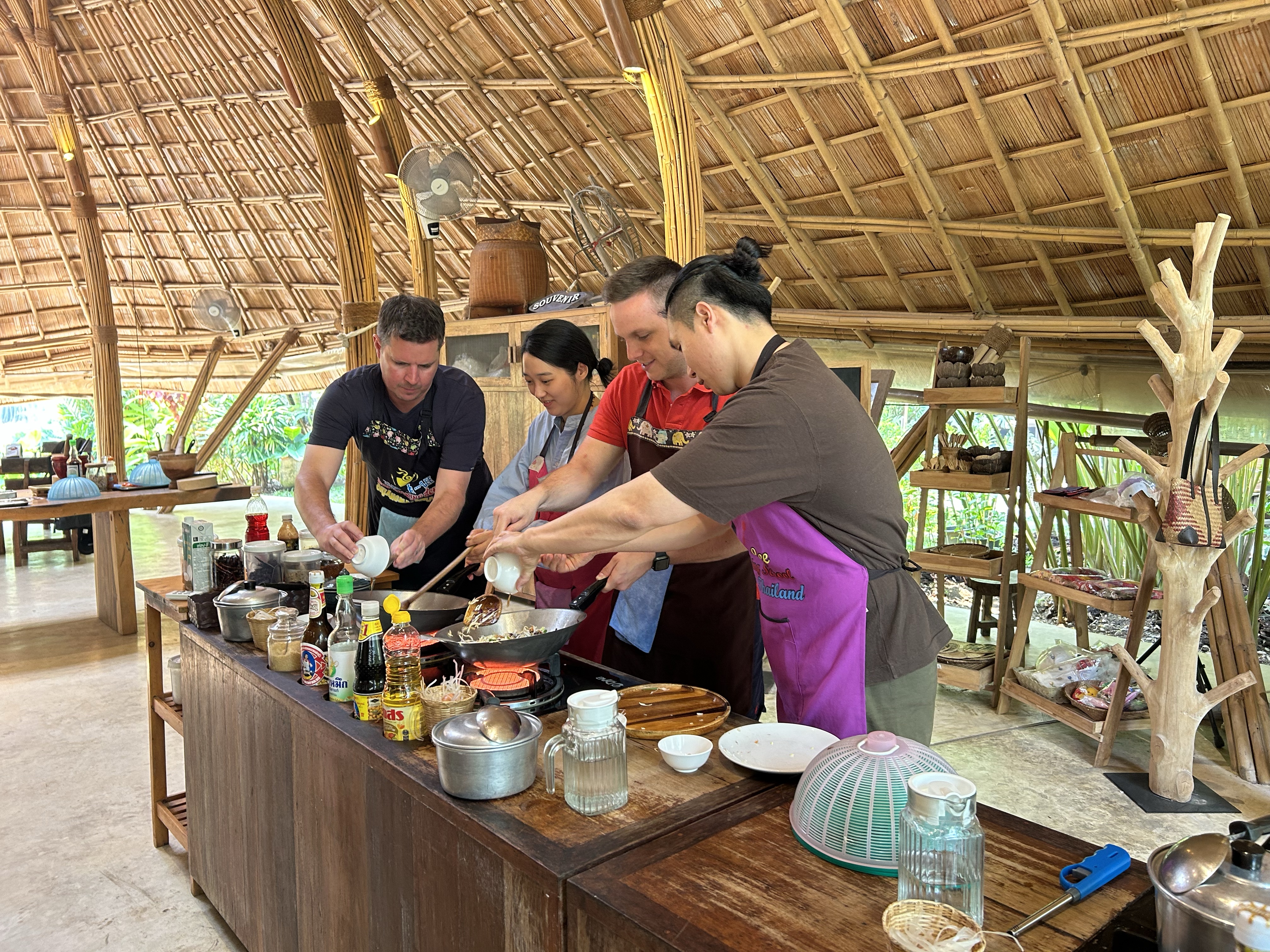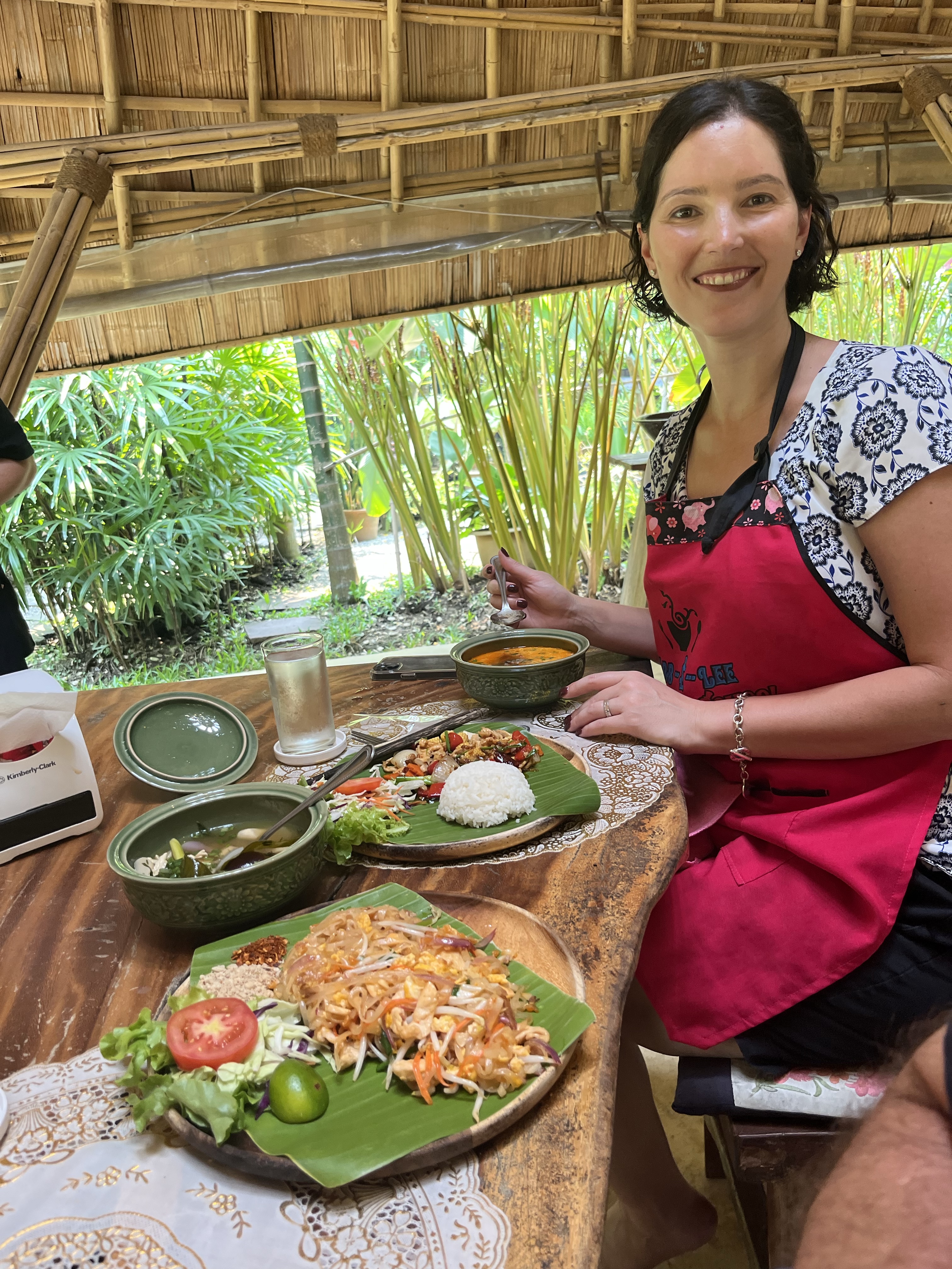 Our final food adventure was a market tour and cooking class out in the country with the amazing Aoy (pron: Oi!). After a less than auspicious start where we got to see some Western tourists (not naming continents) at their best bartering a lady down from 17 Baht to 16 (in a local market) with the biggest sense of glee, for a grand saving to them of 4.3 cents…Or 2.7 Euro cents for them…but Aoy saved the day! She brought sexy back. Referring to the spice level in food as how sexy you are and fluidity of bowel motions as sexy belly she not only enthralled us, but thoroughly confused the meaning of sexy to us…or we’re much more sexy over here than we’d thought…
