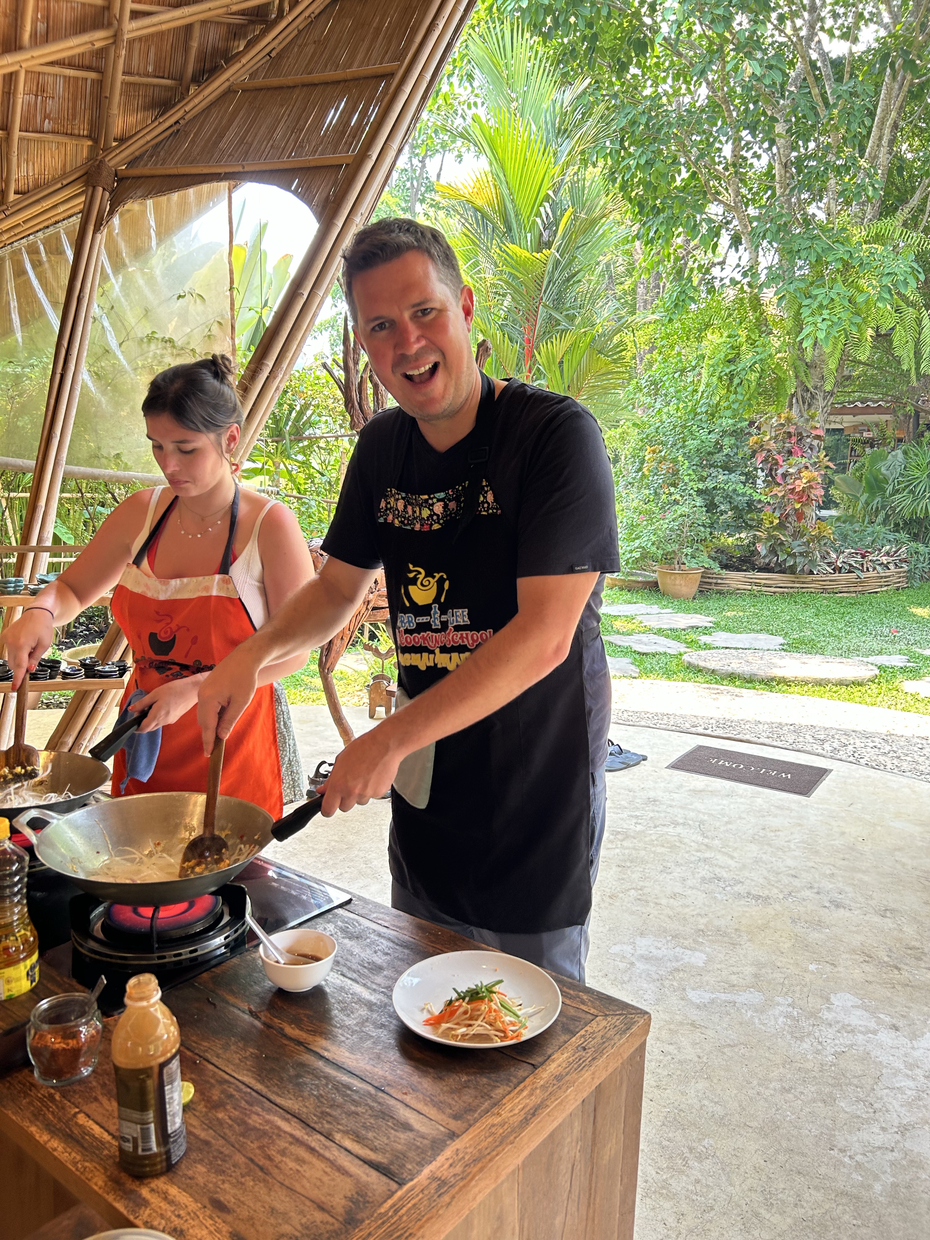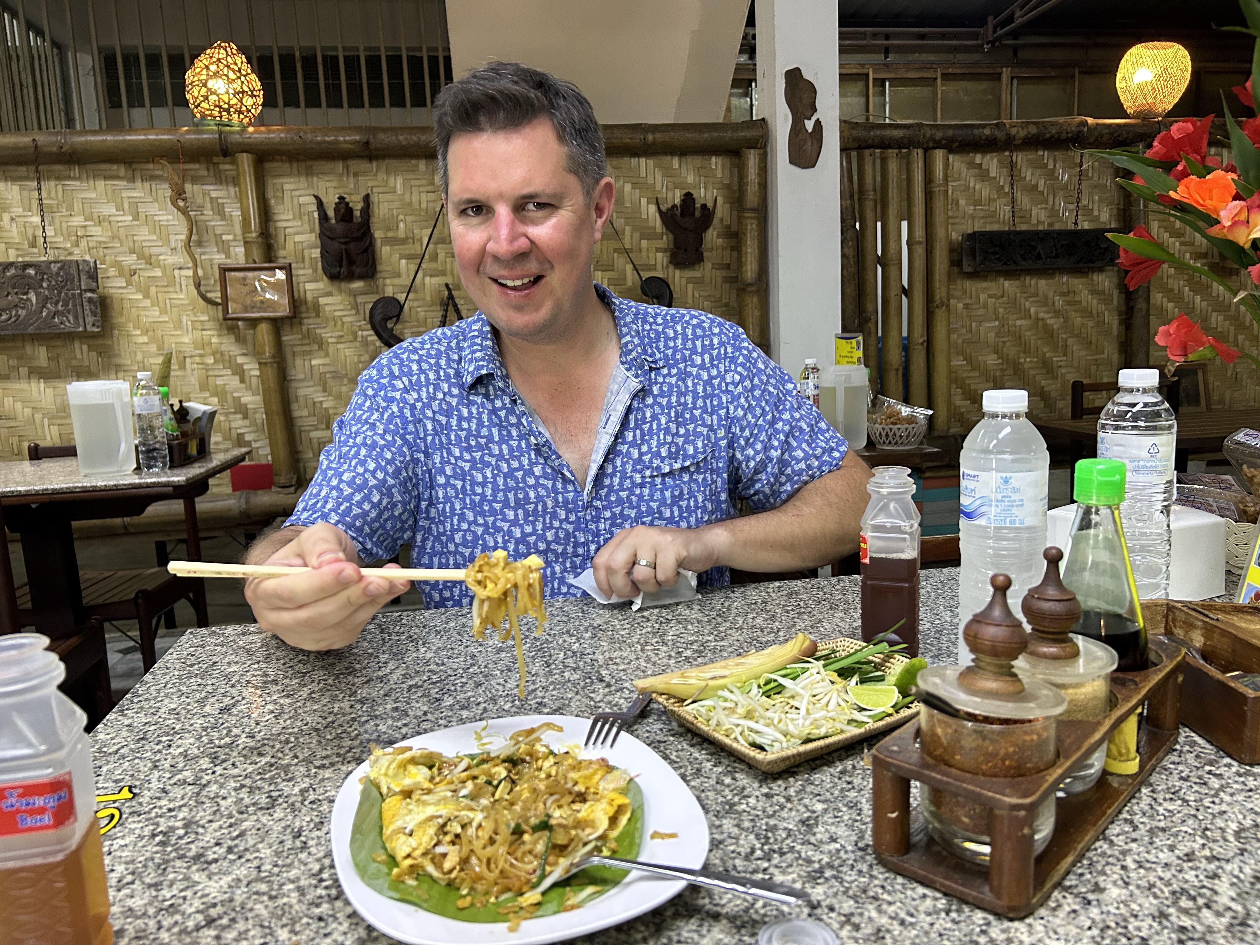 The second tour was a little more adventurous, travelling far and wide in an open taxi to taste the best Khao Soi in town, James ate congealed chicken blood (Lea’s face indicated her decision not to) and we even visited a restaurant that focussed on water buffalo dishes. “Would you like some minced buffalo salad?” I’d laab one! We learned more than the other tours, particularly about the traditional and non-traditional Thai cooking techniques. Non-traditional appears to refer to techniques introduced any time after the Normans conquered England.