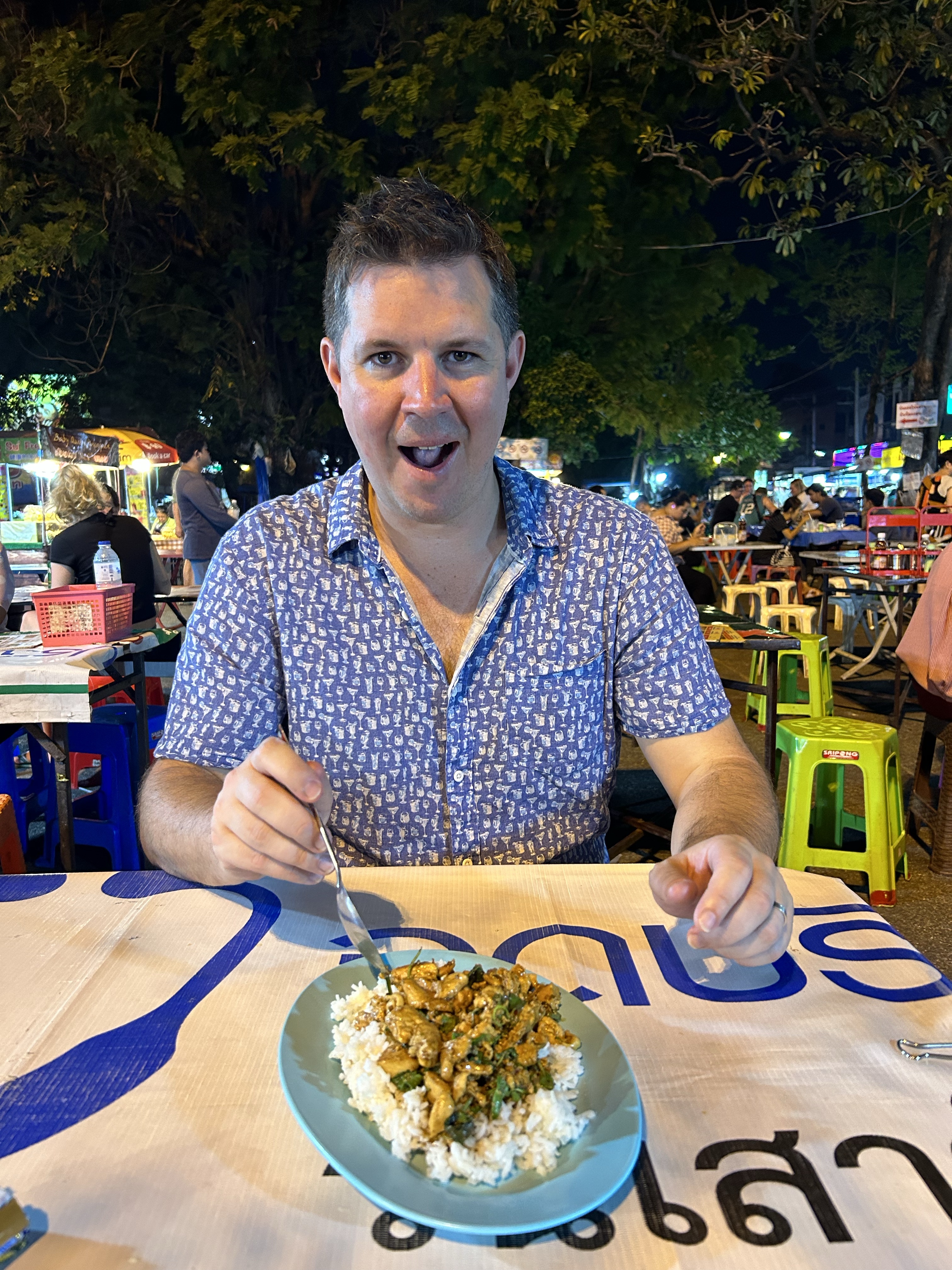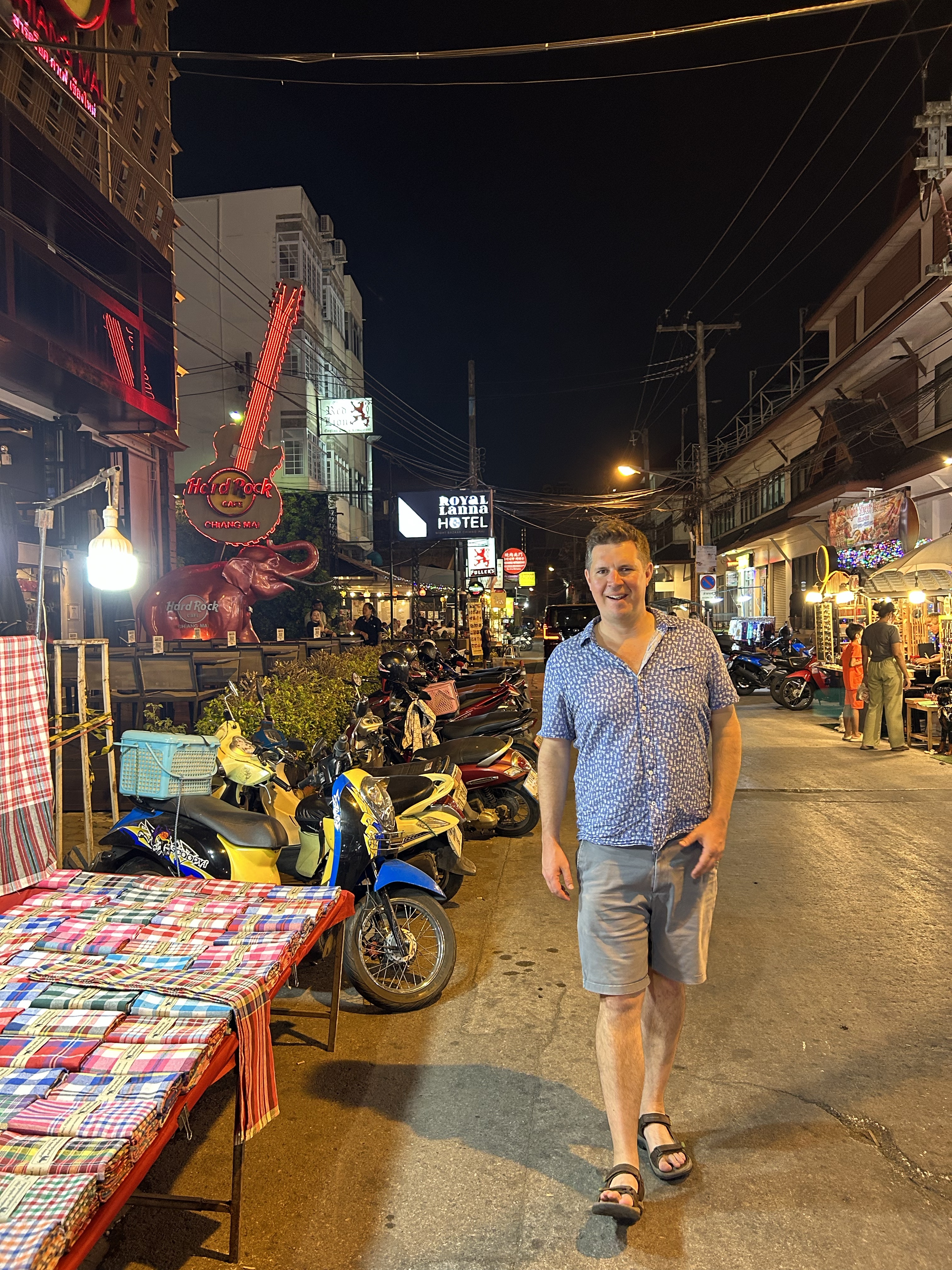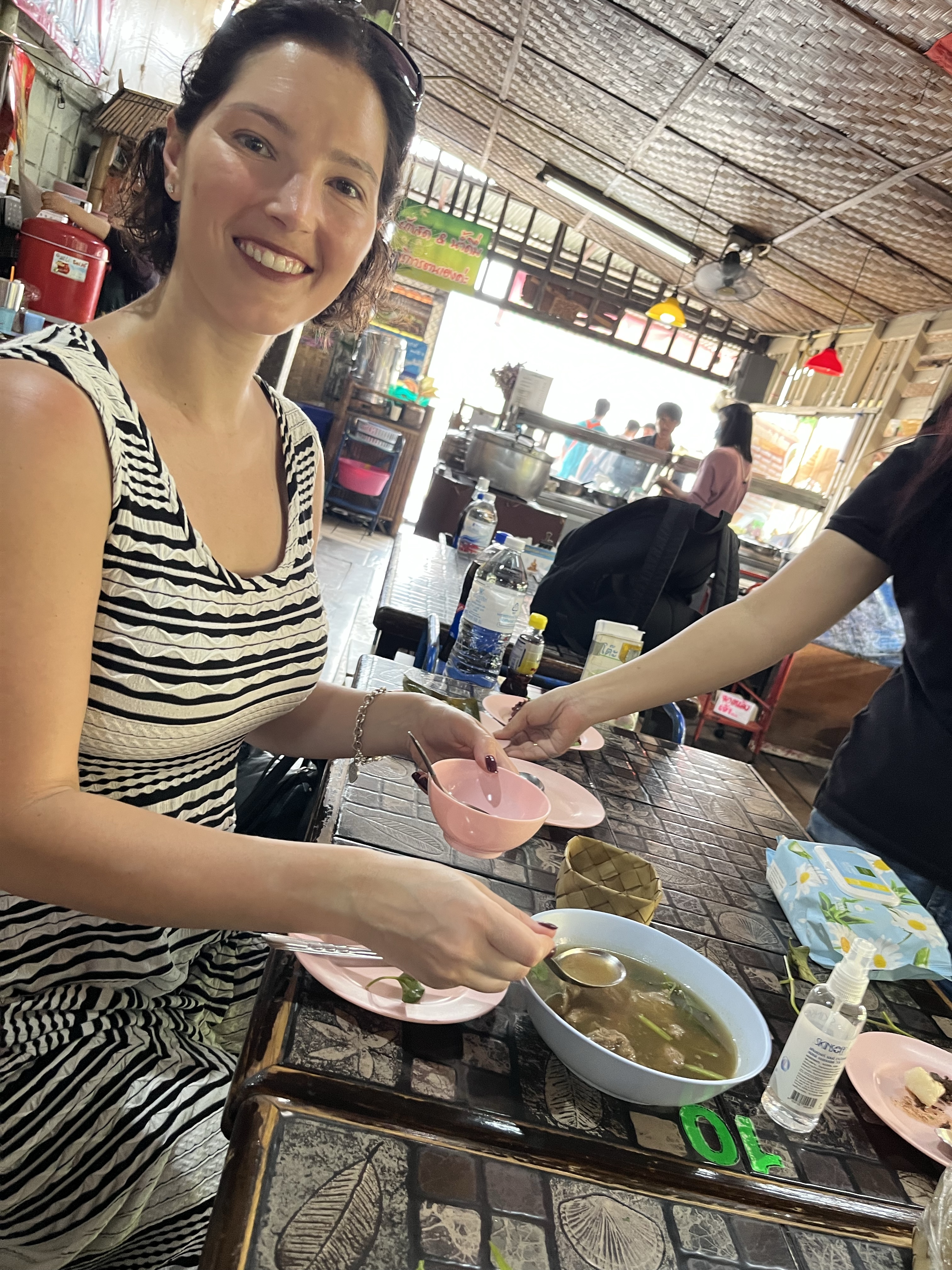 Night 1 almost broke me. A 3 hour food and walking tour condensed into about an hour and a half. We saw the world famous (to anyone who followed the late Anthony Bourdain) lady with a cowboy hat cooking the most incredible pork you’ll ever have, cut through town in a tuk tuk, loaded up at a local night market and sat at a locals only bar on the river Ping to finish off. After walking home, crying, we finished the night with a free bottle of bubbles in our pool on our balcony looking over the old town.