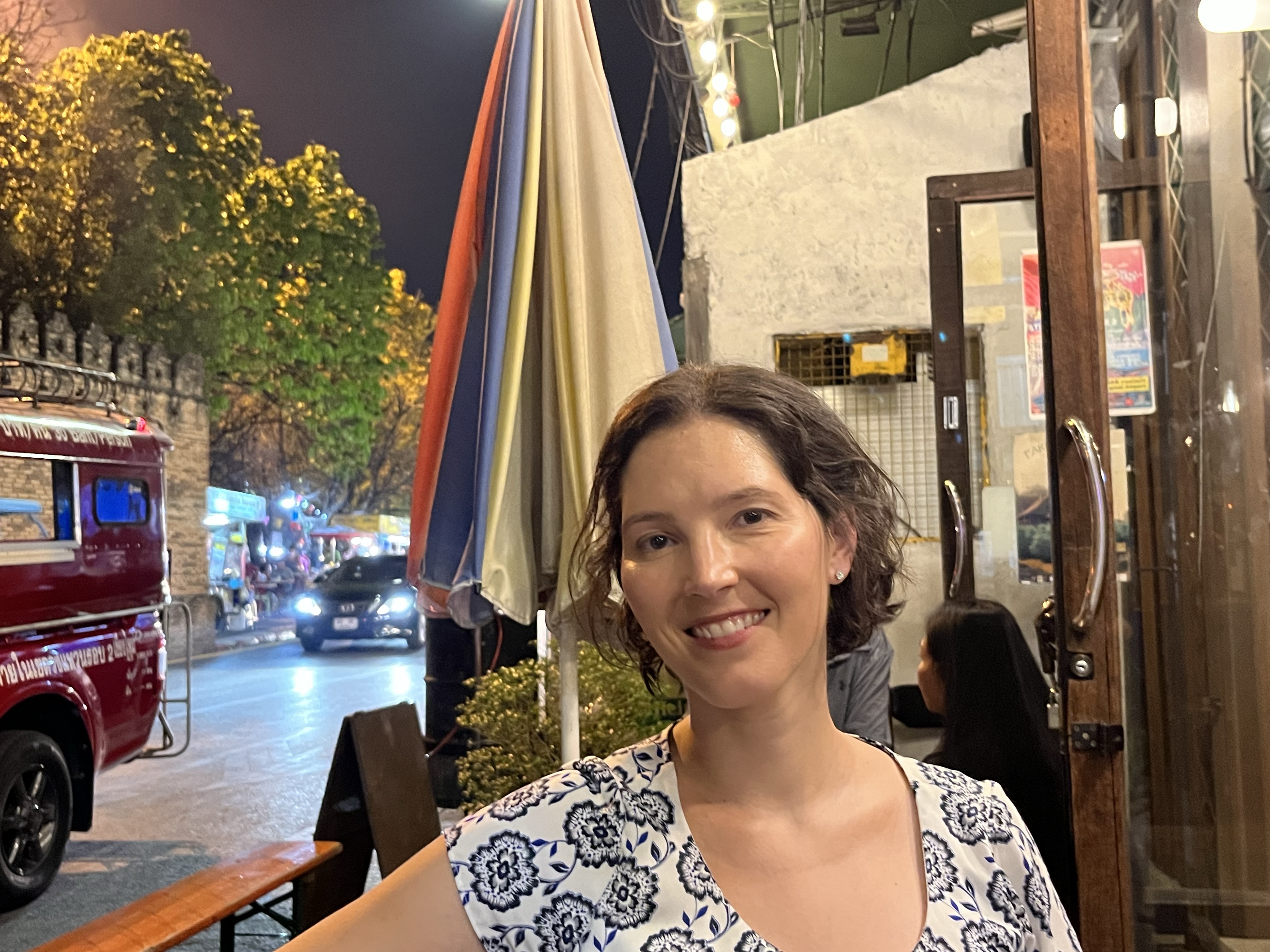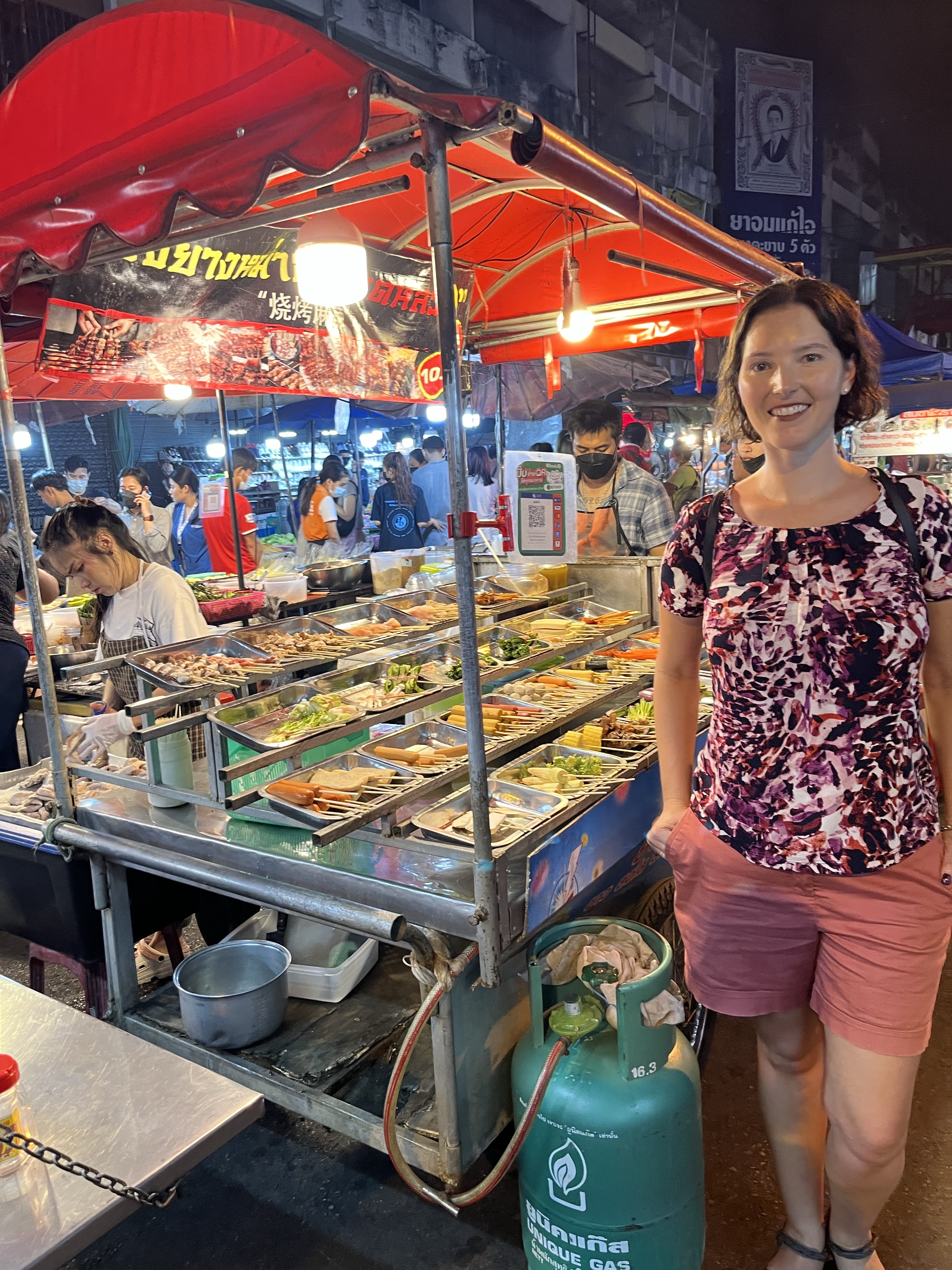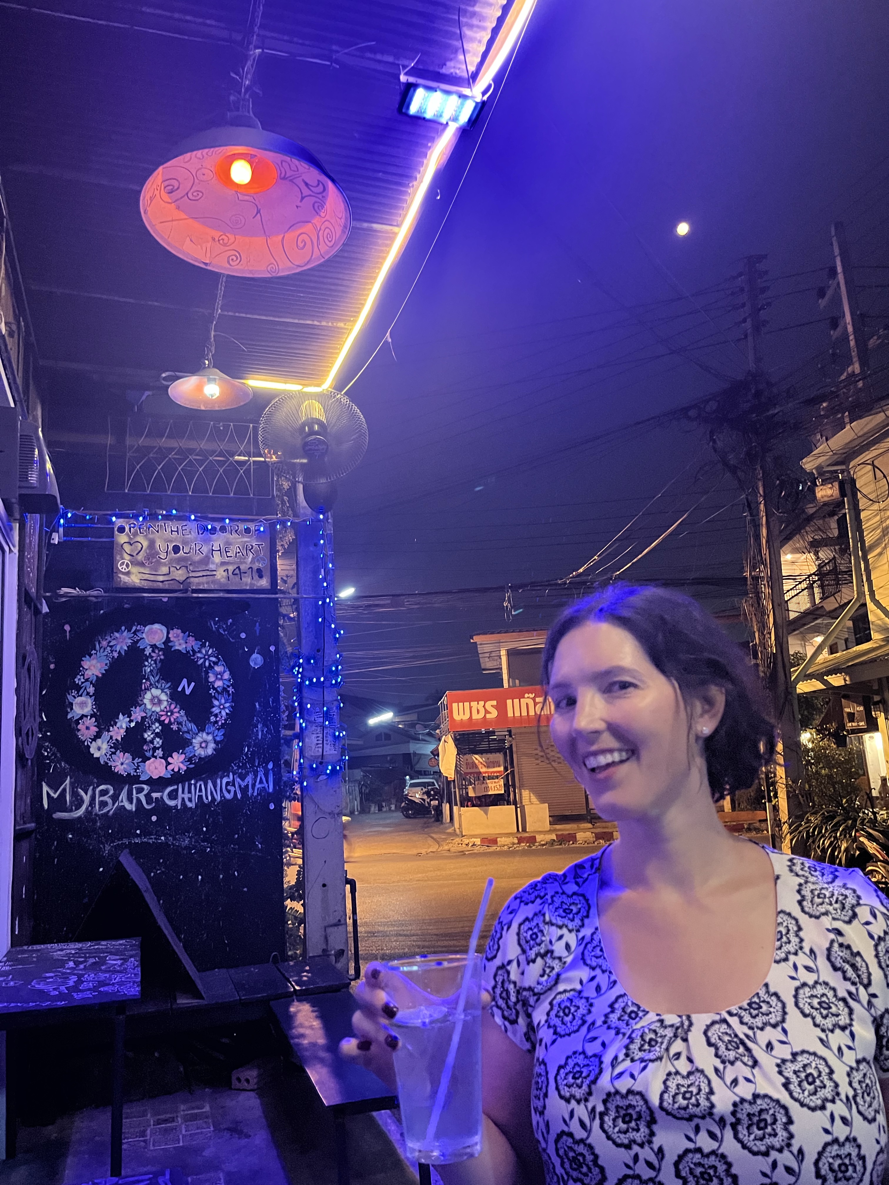 After some more delicious street treats, we fortunately stumbled first on a cool live music bar and then a karaoke bar, then less fortunately, on the red light district, which was less dappled red light and more every colour of the rainbow (thankfully stopping at violet) up in neon lights. We did the perfunctory lap (no dance) of the area, were tempted to hide out in the Hard Rock cafe (at least there we’d be confident if we ordered a burger we wouldn’t end up with a Thai sausage) and quickly headed back to the karaoke bar where we were greeted with free tequila shots…and I’m pretty sure that was the end of our time in Chiang Mai. Cue montage.