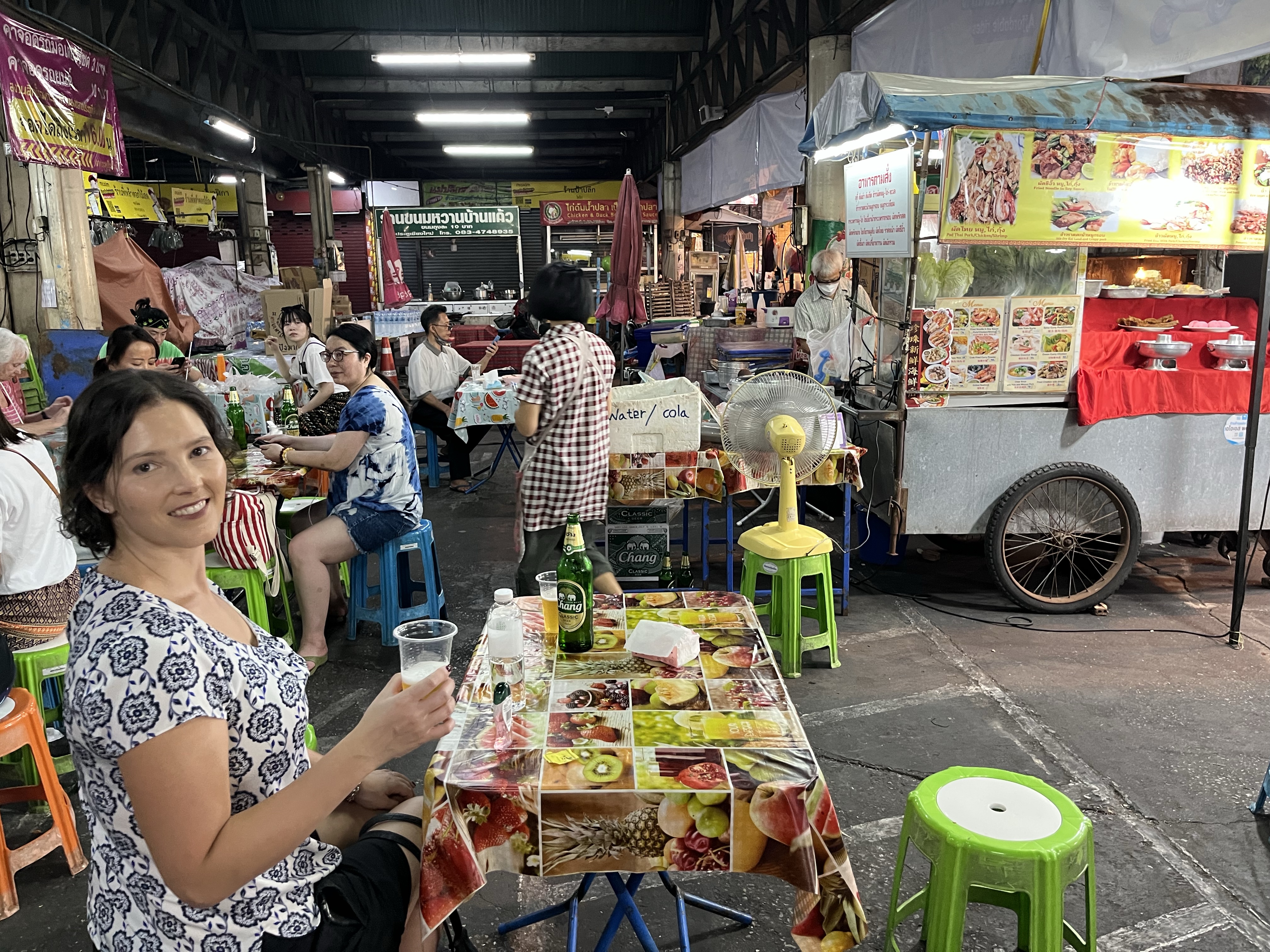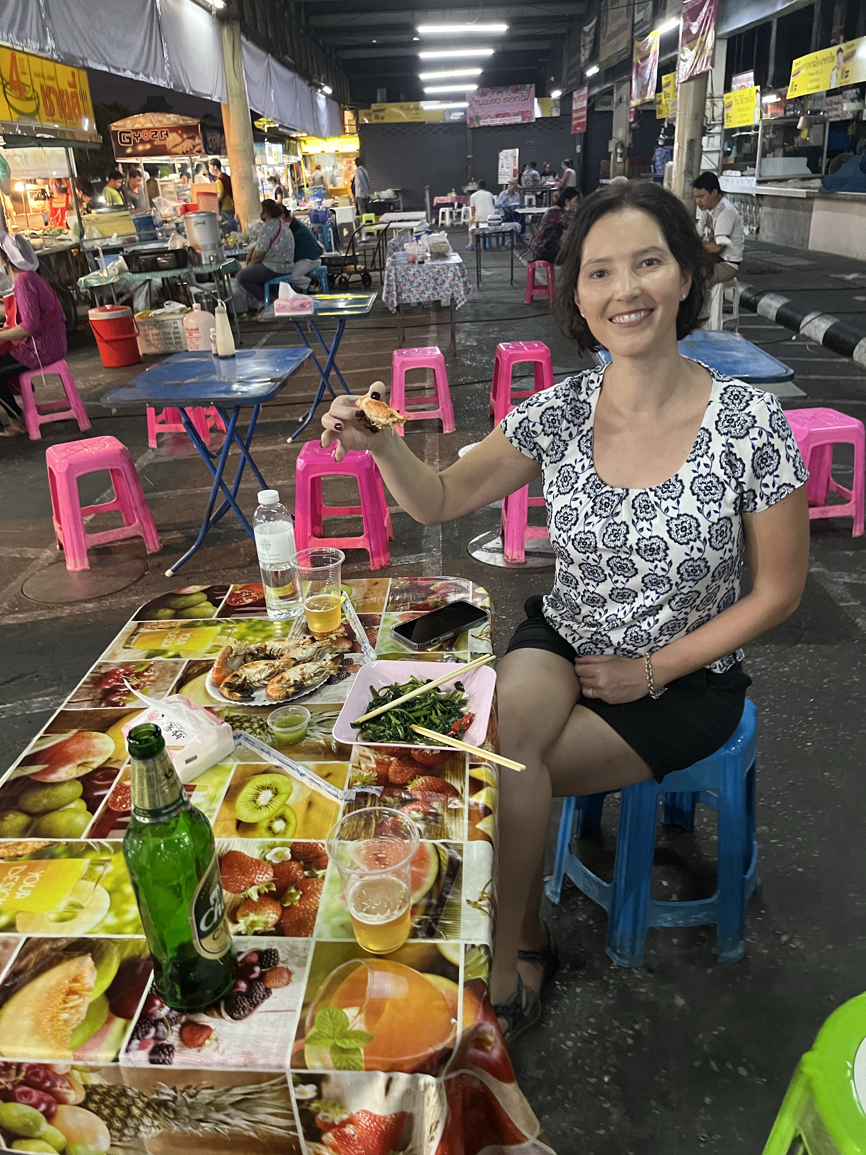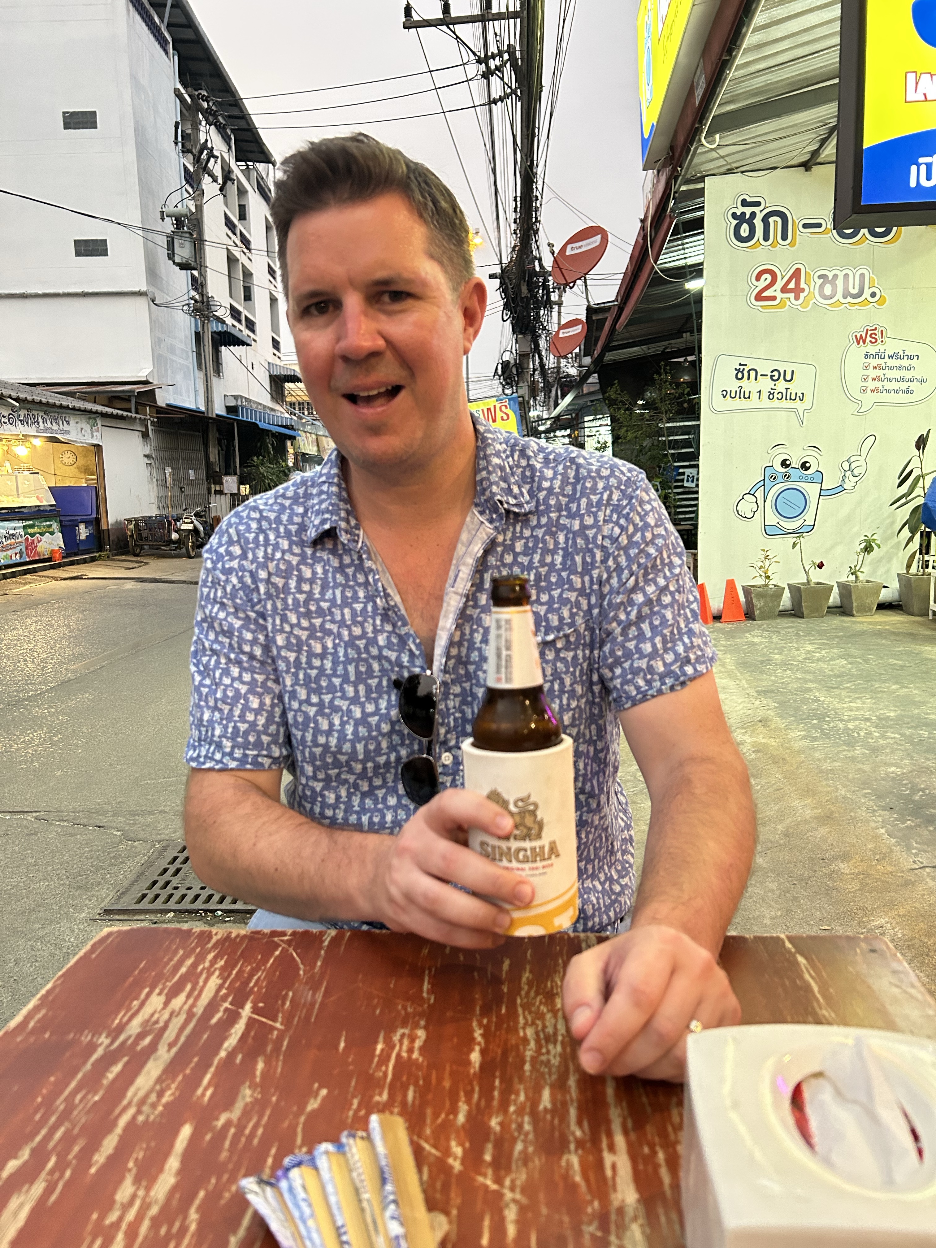 After consuming more pork in one day than the previous 39 years, Lea tuk herself off to get a massage. 2 hours. $25. Bargain! Oh…and the masseuses were all ex-cons. But I’ll leave that there. I’m sure they all served their Thaime. Meanwhile, James was left alone drinking beer by the litre in a dive bar nearby, to be safe due to lack of comms, and was faced with the dilemma of leaving either the iPad an open drink to keep claim over the seat. Would it look creepier holding a large bottle of beer lining up for a Thai toilet or an iPad and claiming you’re just after a quick wee. I chose the iPad, and ran the risk of leaving the open drink container at the bar, thinking that being already above average size around here and having 2 food tours in me, it was unlikely that a) I would be a target and b) the run of the mill rufies wouldn’t pack much of a punch…completely forgetting that they routinely tranquilise elephants in these parts…