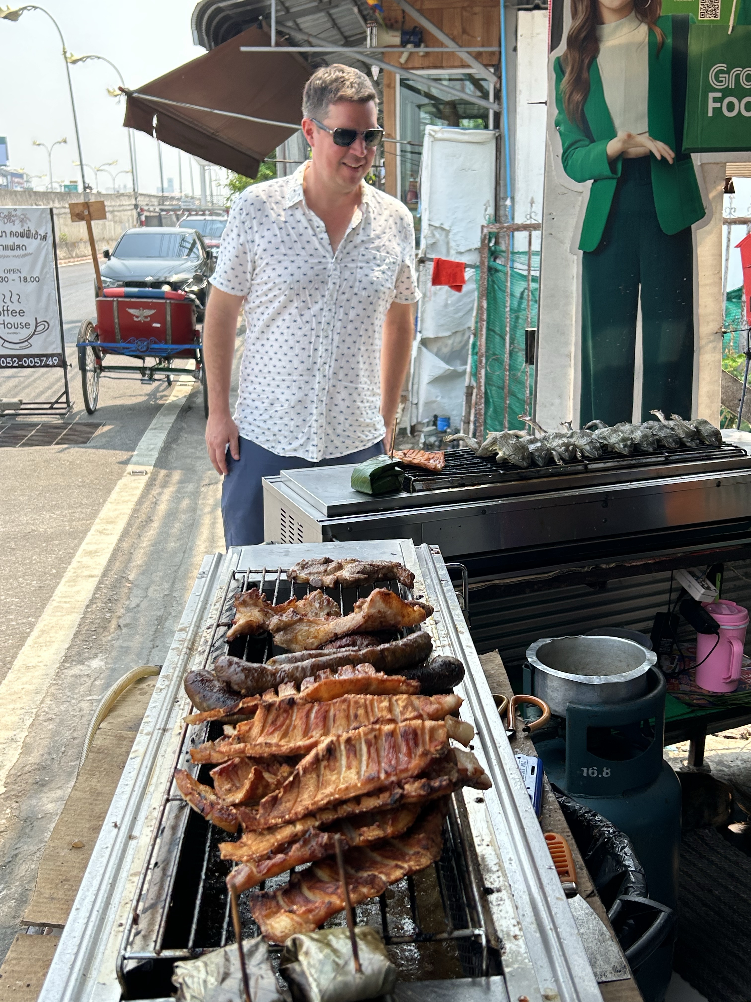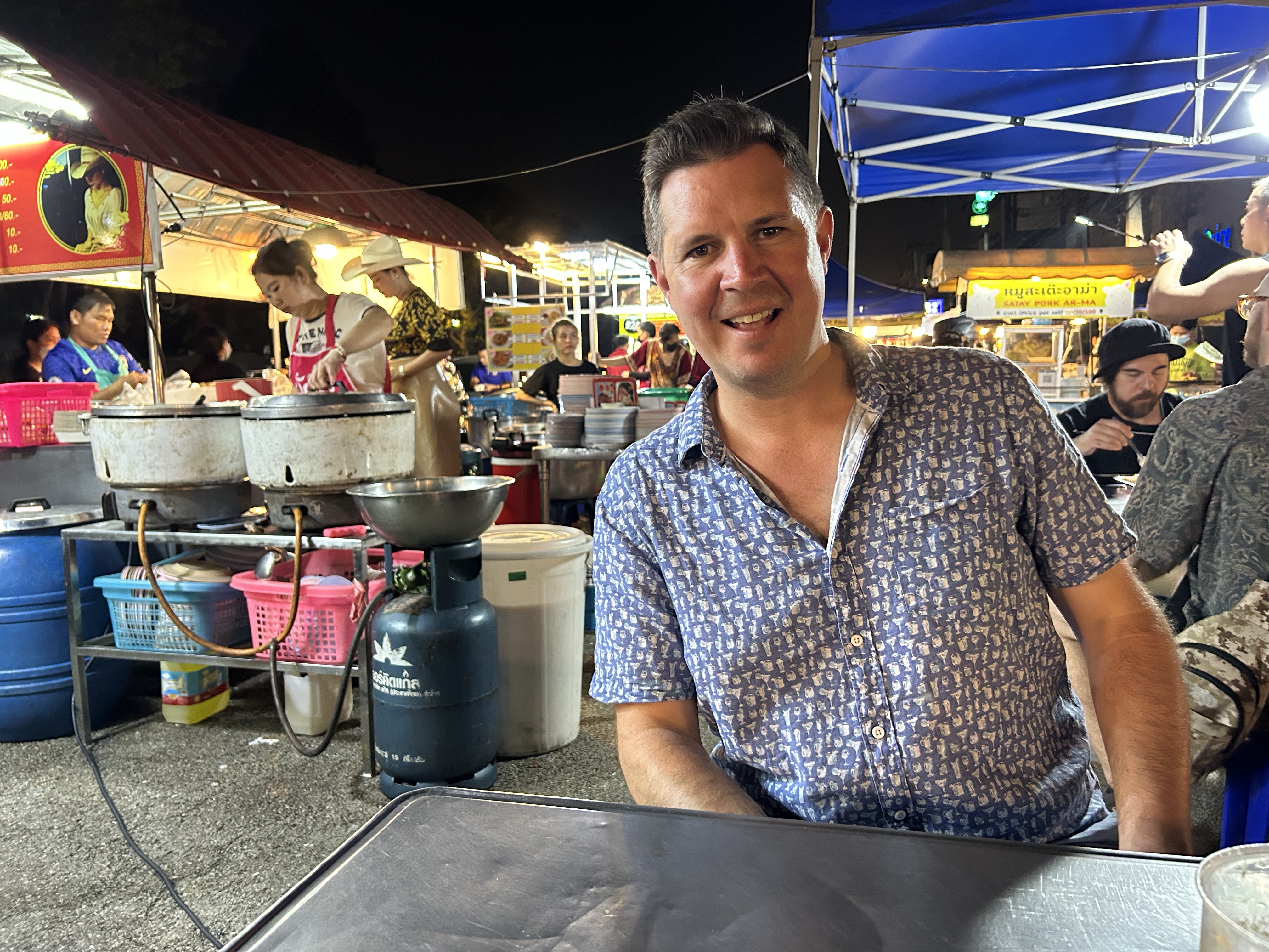 On our final night in Chiang Mai, I put on my complimentarily hotel washed shorts (putting the HOT into Hotel washed, they shrank about 2 sizes), shed a small tear, then we hit the town to do our own food tour. The highlight being char-grilled prawns and stir fried morning glory (stop it), where the sight of us brought in another Westerner (from unnamed continent) to try the prawns. After sending them back 3 times because the CHAR grilled prawns had black tails, the undeterred shellfish entrepreneur, simply flexed his mussels and took to the prawns with scissors, waited a few minutes then dropped them back on his table.