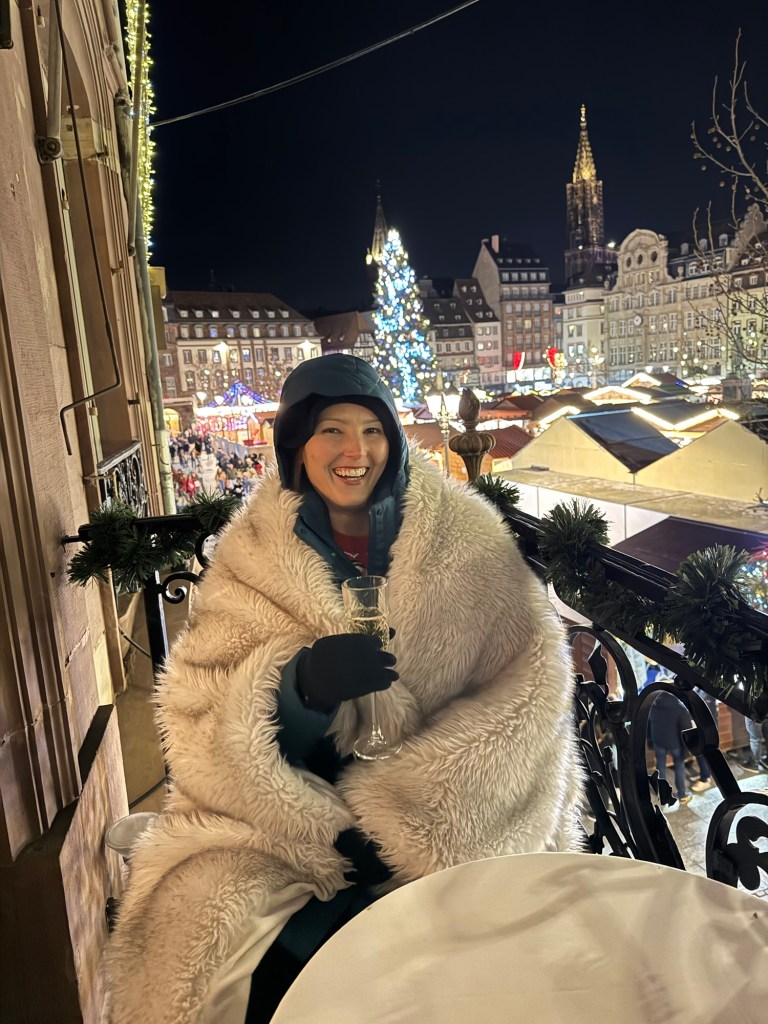On to the weather. It was cold. We splurged for a balcony over the markets in Strasbourg where we’d stayed before (in an August, when it was warm). As we rugged up to enjoy our view on the first night, we saw a guy of unknown origin in thongs, shorts and singlet walk below us, he was 6’4” and full of muscles so we knew what to do! We just smiled and….our lips cracked and we went back inside for some Carmex and another rug.