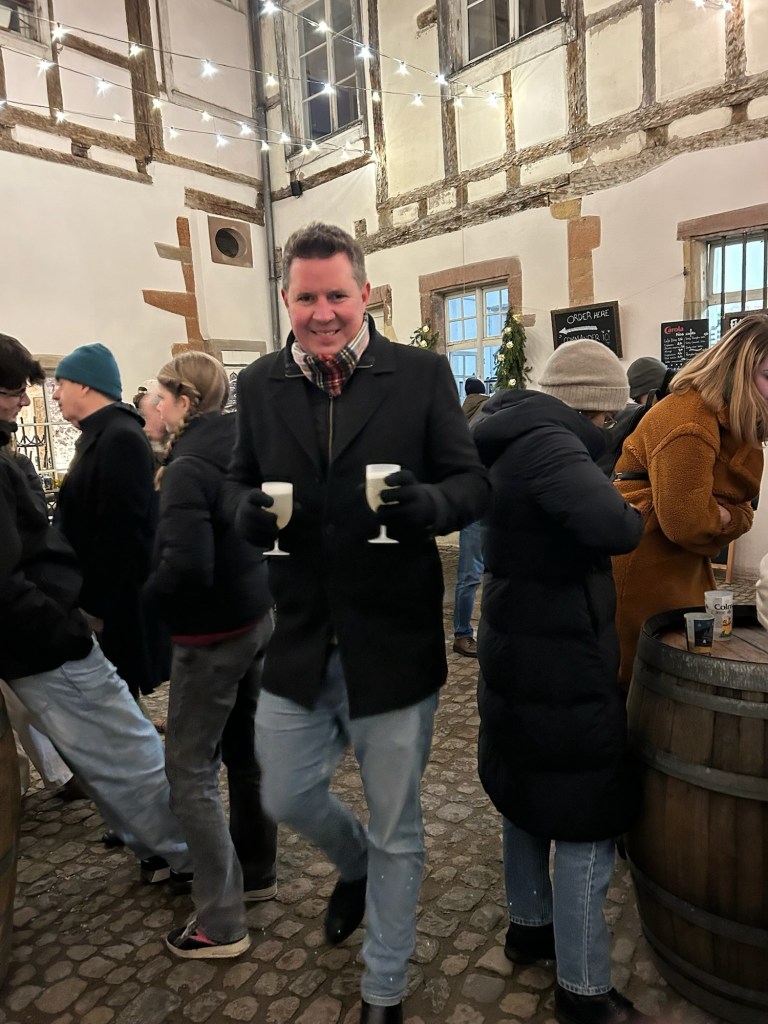 The train stopped. The doors, miraculously, opened right in front of aforementioned nose, but said nose pointed out (much in line with the season) that there was “no room in the Inn!” Lea: “GO!” I’d like to say James parted the way onto the train like Moses parting the Red Sea…I’d like to say that. But others, desperate to let their people go (to Strasbourg) guided me onto the train in the same way one guides olives through a press. Coming from a land where 8 PAX per acre is feeling a little crowded, to being unable to move your arms or avoid crushing fellow travellers as conflicting calls from outside the train of “push” were met with less and less air filled lungs screaming back “STOP, FULL” in multiple languages, I couldn’t help but picture how stupid we’d come across on the “When things go wrong” episode when they describe how desperate we all were to see santa….again.