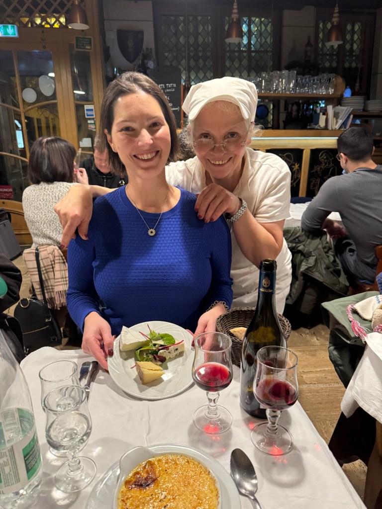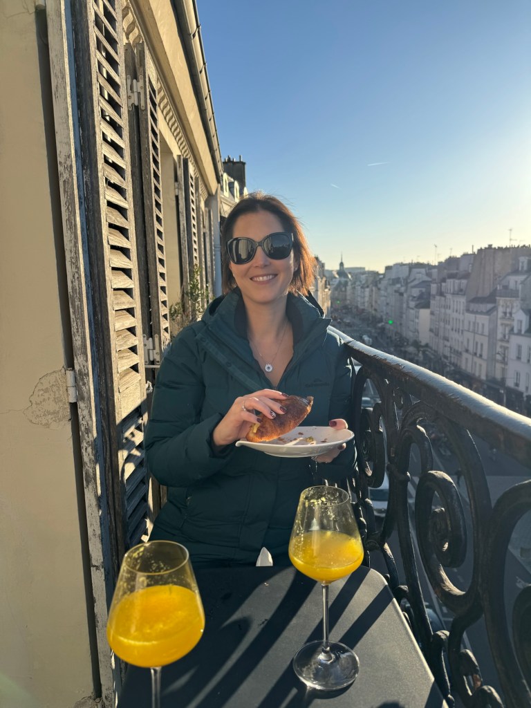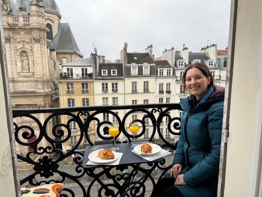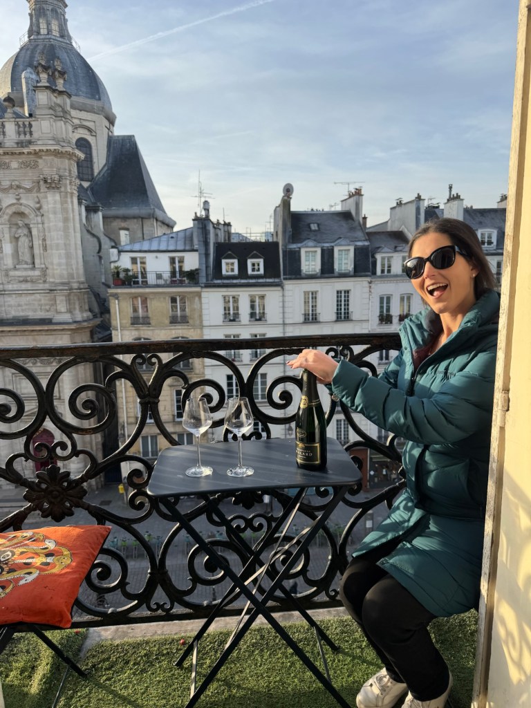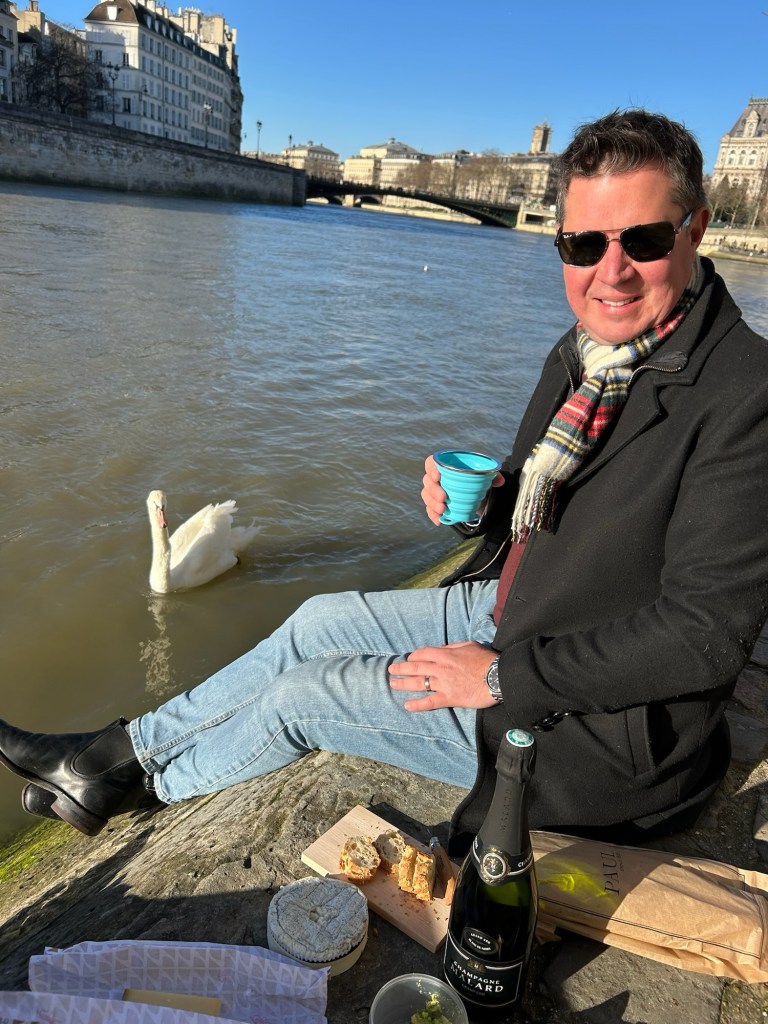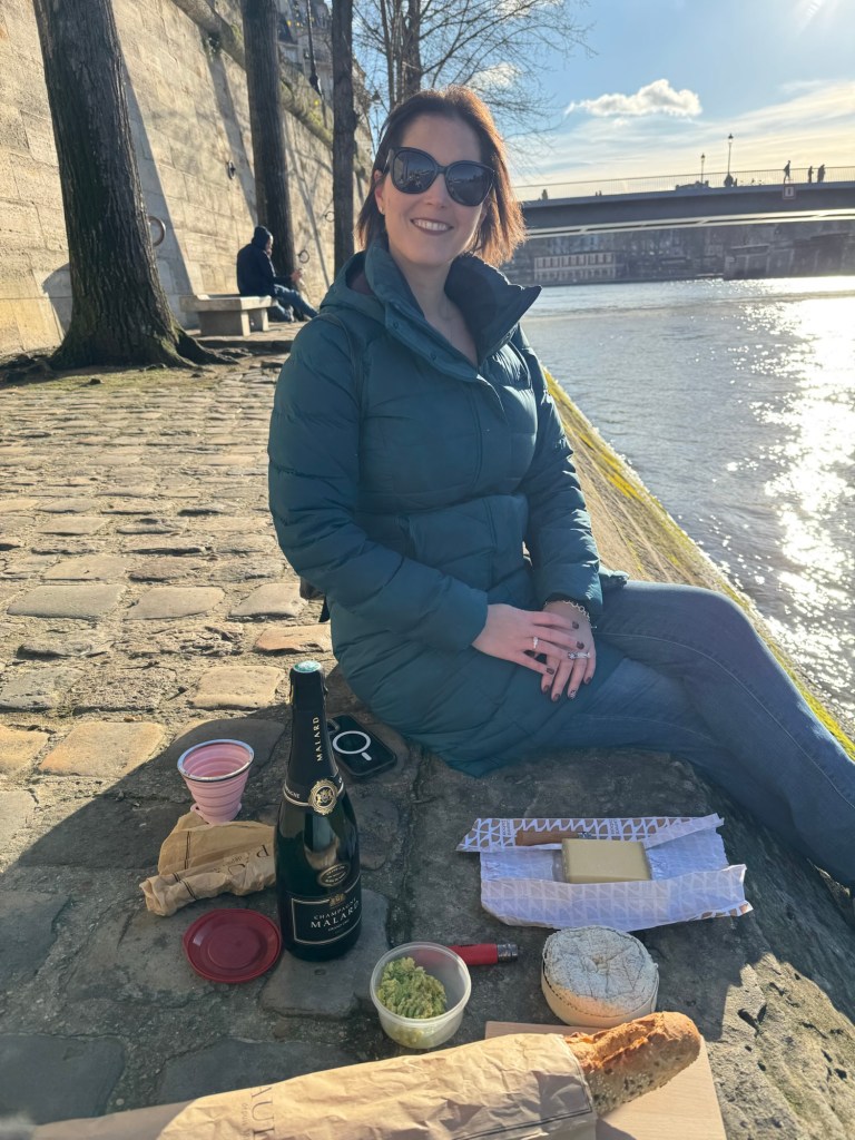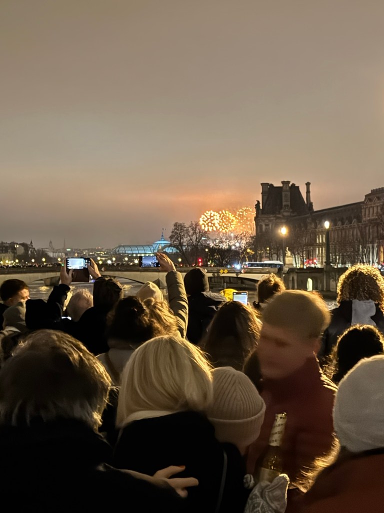 - We spent New Year’s Eve in our apartment with all our new friends: Laurent, Leclerc, Piper, Pol, Lally, Tatty and Mrs Cliquot, which was a bit tight given there was only one coq to share round…before venturing out to a bridge over the Seine to bring in 2025 watching fireworks over the Arc de Triumph and being shown that our discreet street drinking wasn’t required;
