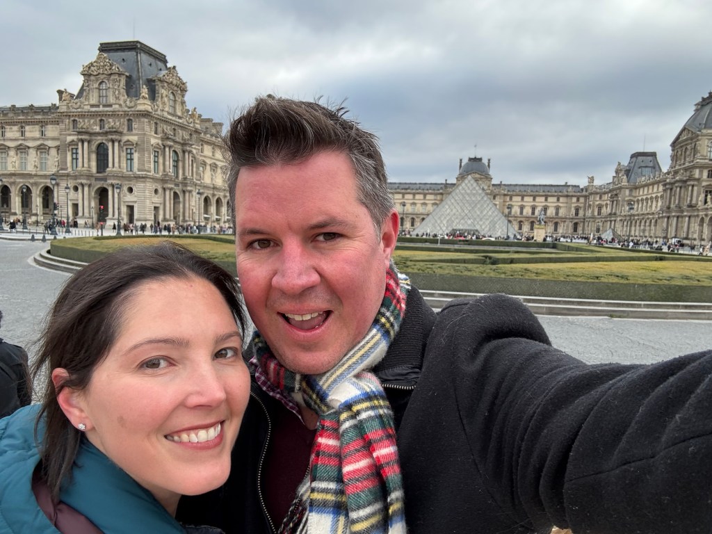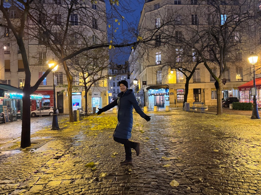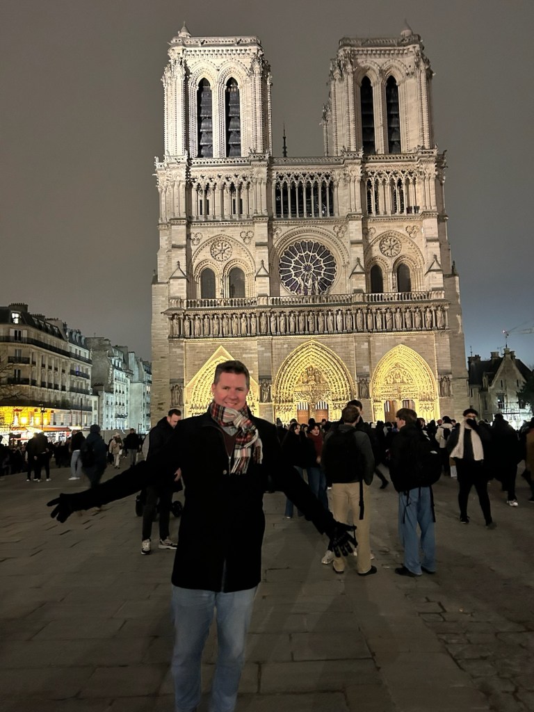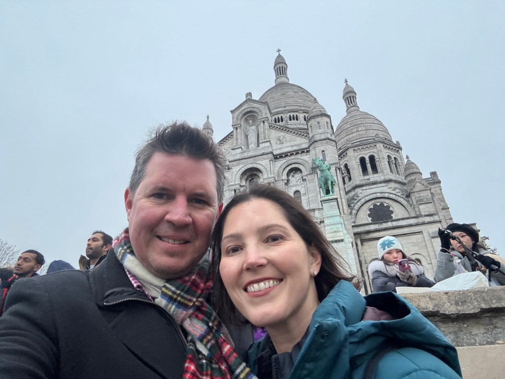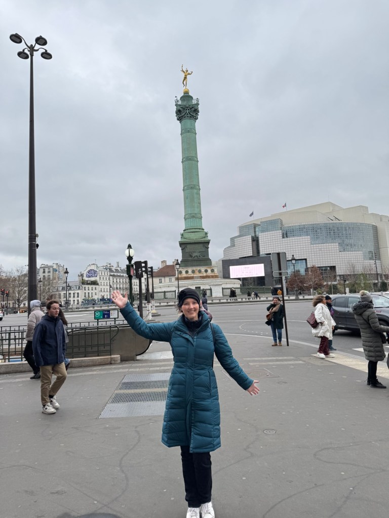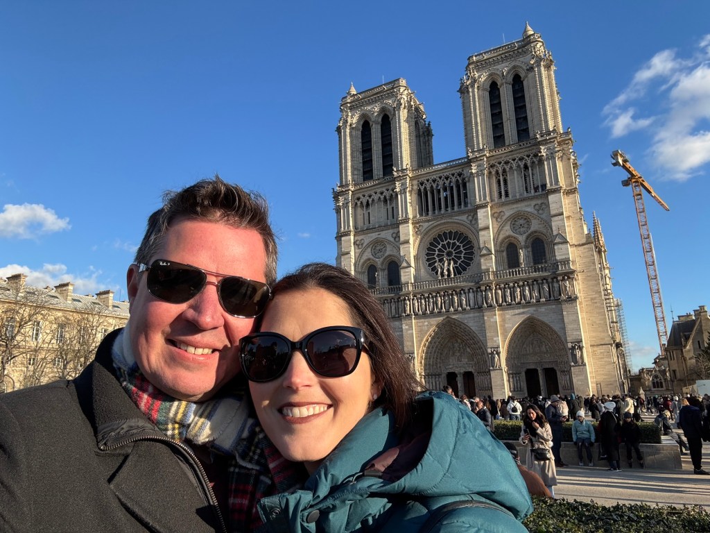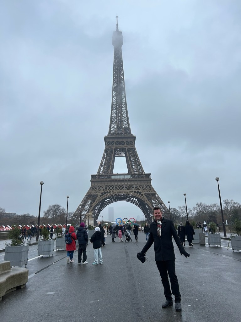 - We spent New Year’s Eve in our apartment with all our new friends: Laurent, Leclerc, Piper, Pol, Lally, Tatty and Mrs Cliquot, which was a bit tight given there was only one coq to share round…before venturing out to a bridge over the Seine to bring in 2025 watching fireworks over the Arc de Triumph and being shown that our discreet street drinking wasn’t required;