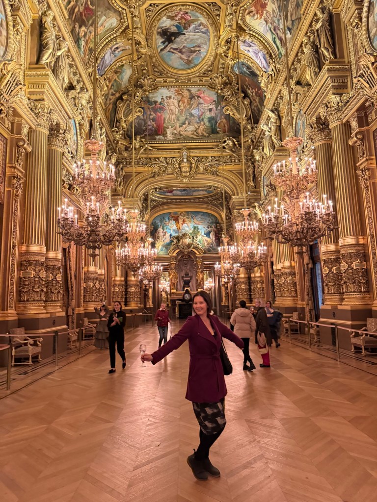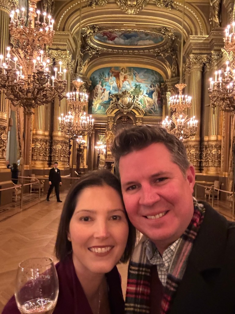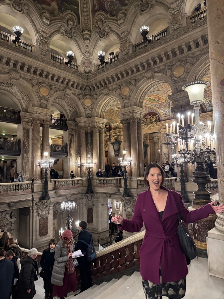 - We also did our favourite Parisian things: drank Champagne on the balcony, in the lift (did i say fifth floor?), on the street, sitting by the Seine, on benches at Place des Voges and Place St Catherine (well away from aforementioned new friend) and at the breathtaking Palais Garnier;