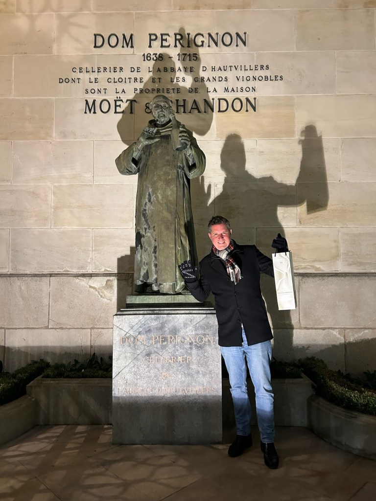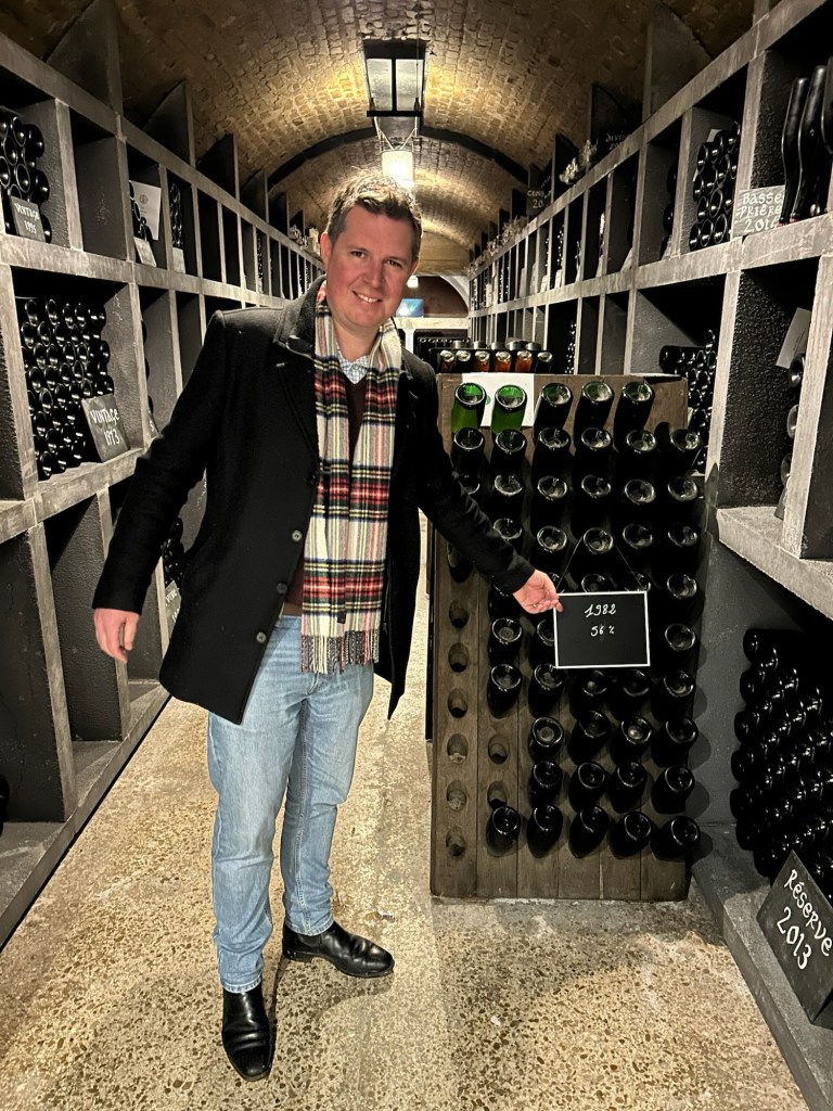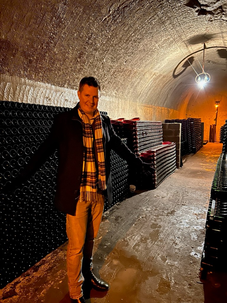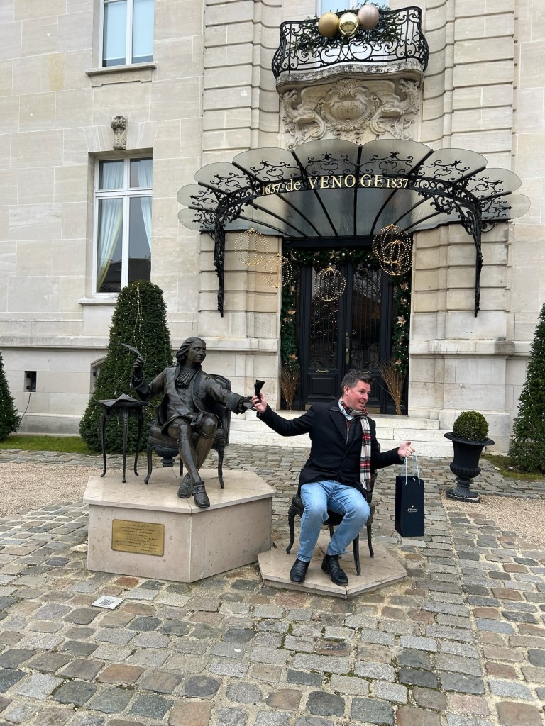 Our first Champagne tasting was outside. James, full of adrenaline to make a mends for the last time in Epernay (reminder: “POP”), did’t feel a thing as he chased Champagne glasses across iced bench tops, ensuring we were drinking fast enough to avoid the wines freezing. So cold, “how cold was it?”. So cold, even the tiny Xmas markets in Epernay were named: “Eper-neige”. A totally James approved pun, with “Neige” being French for “snow”…get it? That’s Champagne comedy.