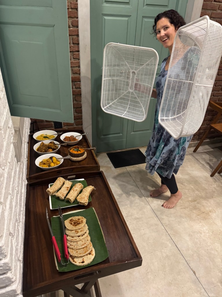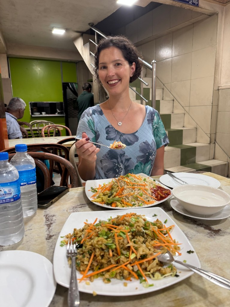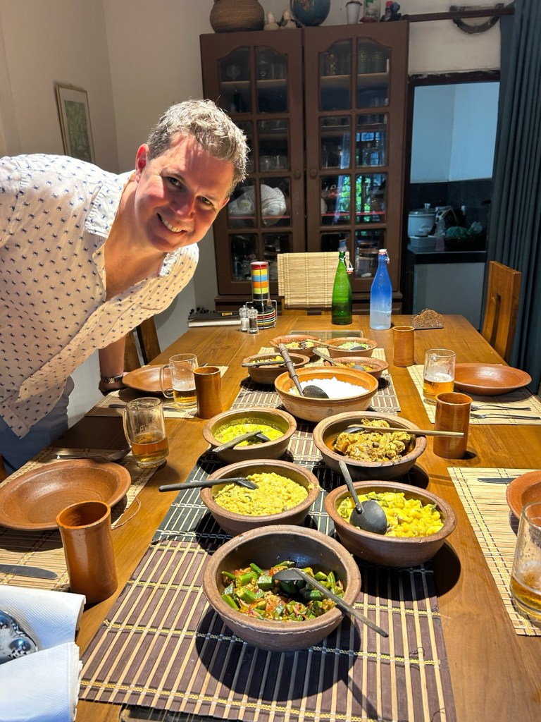 - Admiring the locals insistence and courage in wearing white shirts despite eating curry for every meal, with their hands!