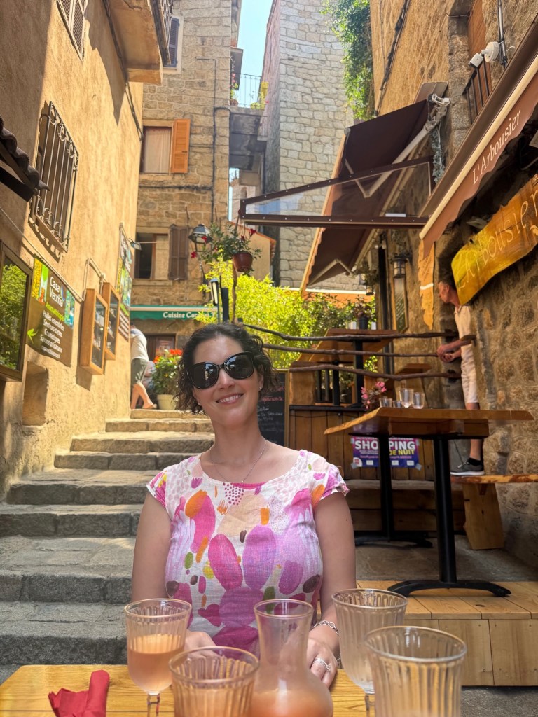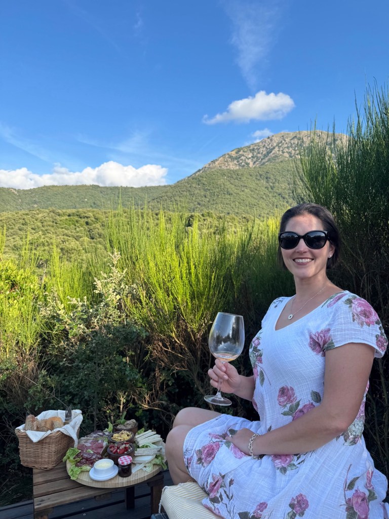 Apparently, the Mediterranean islands are known for their amazing beaches, but Lea’s desire to learn how farms are handed from one generation to the next resulted in our first stop in the wine lands of…Patrimonio. We had an incredible lunch with a view, and one of the best wine tastings ever in this unlikely wine region before continuing on driving through one of the most stunning landscapes and worst driving James can remember, to our first night in beautiful Corsica.