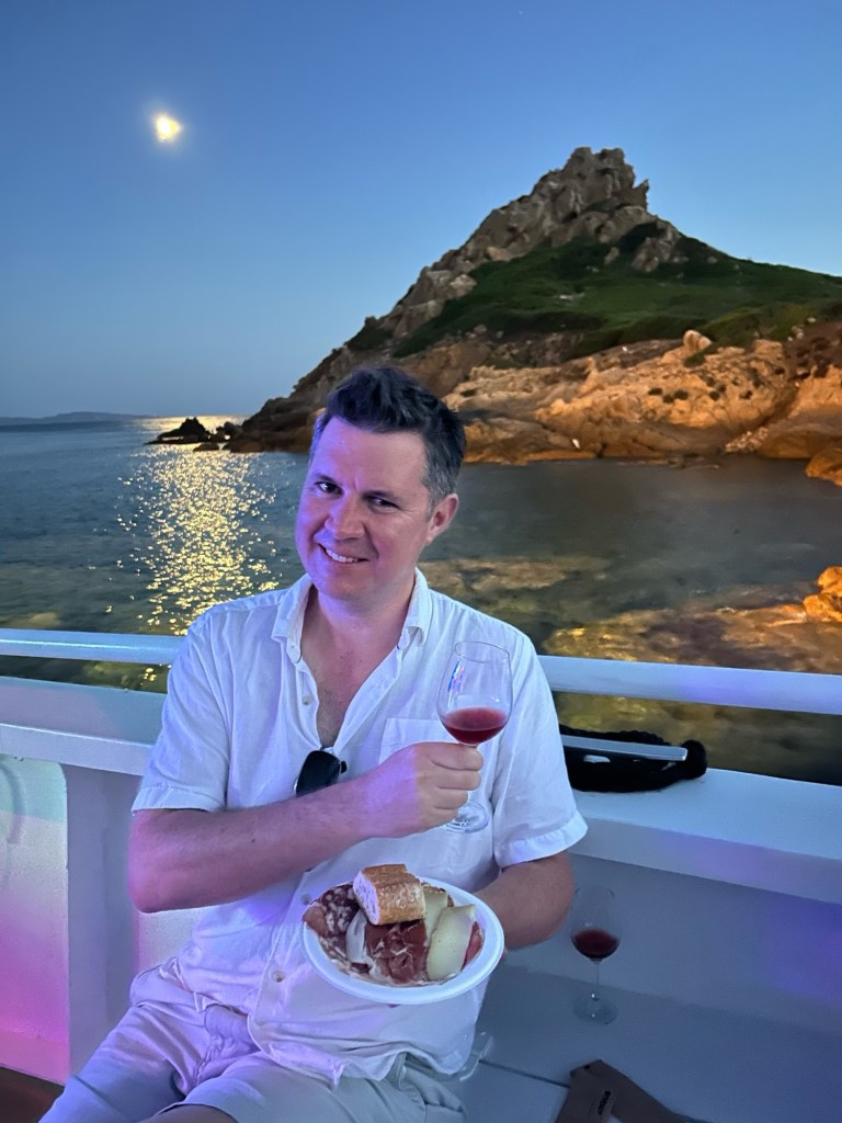 Our next night was in Hotel Napoleon in Boney’s home town of Ajaccio and, surprisingly or ironically, with the cheapest stay of the trip, and after a few forehead bruises from the mainland already, had the highest bathroom ceilings so far! We set out on a cruise for a three hour tour, a three hour tour of the bay at sunset thinking what could possibli go wrong? We didn’t have to think for long as we watched the crew smoke, drink, perform multiple boat to boat mid-sea transfers of je ne sais quoi and generally take us to right to the edge of what could possibli go wrong. We maybe should have got off after the Skipper’s 5 minute intro in French to rapturous applause and laugher was followed with, “euh, Anglais ah? Euh, em, one rule…don’t fall off”. It turns out a “wine tasting” cruise in French is actually a “piss up” for all…the Skipper, brave and sure, included. After witnessing the most drunken dockings by a Skpper since <editor’s note: you can’t put his name in here as he was a professional chandler> at Geordie Bay we weren’t surprised the crew forgot to put out the gangway as watched drunk cruisers leap onto the jetty like pissed lemmings (note we didn’t say frogs) off a cliff. The “tastings” not adequately absorbed by the “local delicacies” served…cheese and ham, quelle surprise, and some sort of onion pop tart.