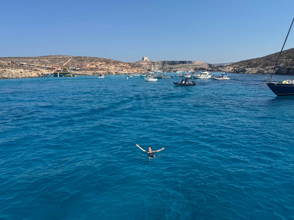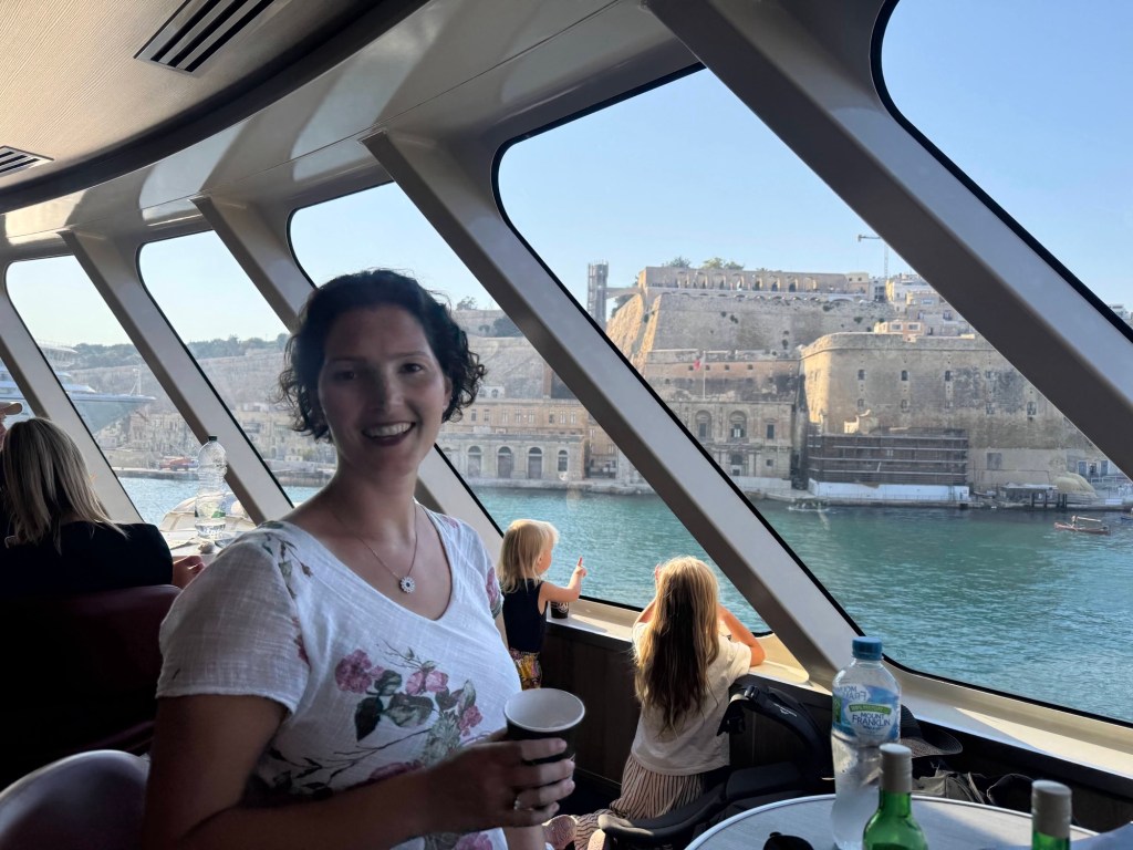 - Had to pretend we had children to get smuggled onto a early boat back to Malta because our “Aussie” guide did us a solid after we left (judging by the hug he gave Lea) the biggest tip he’s had for a while, and the Spanish ladies we’d shared a van with (sans enfants) were not impressed by our cutting in…and certainly weren’t impressed with me bidding them “farewell and adieu”, only to end up back in the same van o Valletta and pretending we don’t speak English as they berated us all the way home…maybe, but we don’t speak eSpanish so they may have been talking about swimming in the blue lagoon of Camino.