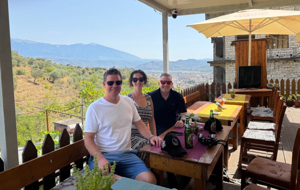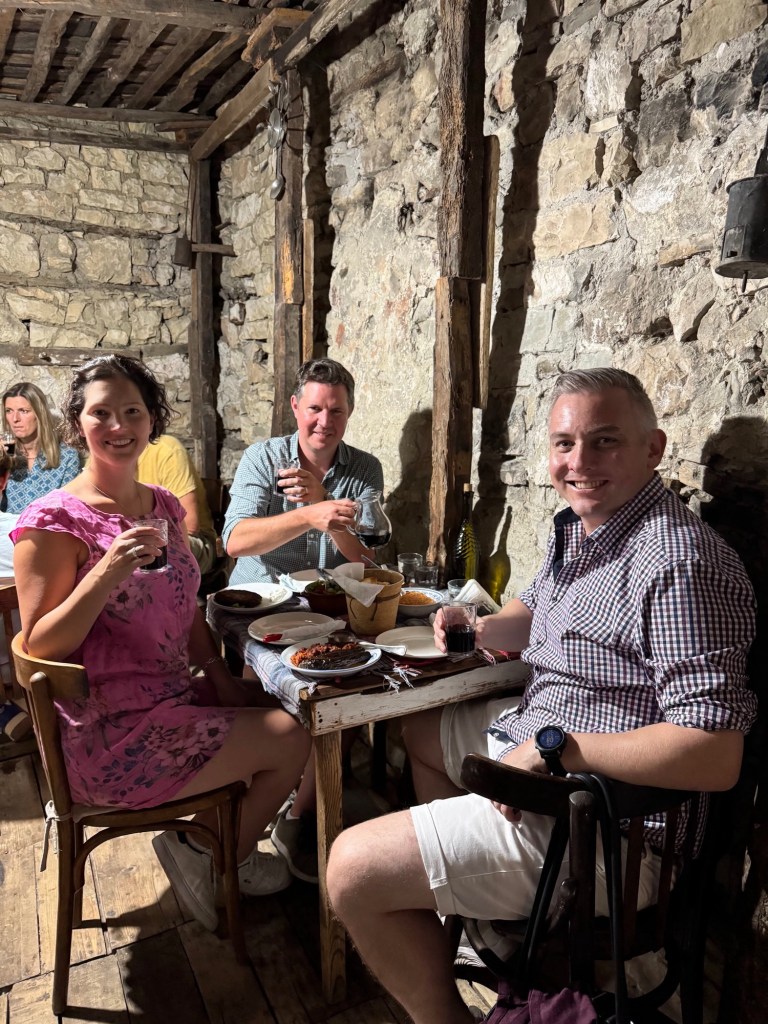Our favourite Albanian town was Berat. The first night spent having dinner in the back of someone’s thousand year old house, such a great experience where you might have guessed, the owner did shots of raki with everyone as they paid their bill…and with a “lucky” bunch of Australians, who were told to wait back, did a couple more… We then had lunch the next day above the town, watching embers rain down into our drinks and food, and rather than be nervous, be thankful we could drop that this “happens all the time back home…in AUSTRALIA” 😉 before being forced into raki shots in a way that made us nervous to continue these announcements going forward…the nerves didn’t last long (see below).