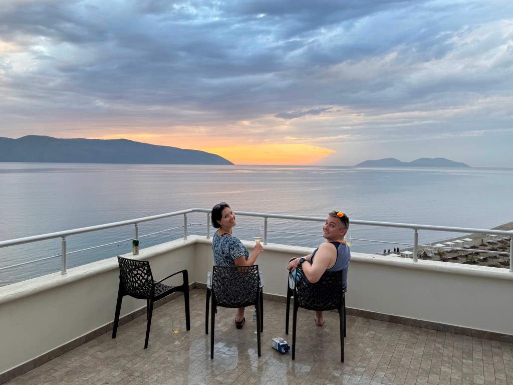 Our final night was spent in the beachside town of Vlore, in the biggest electrical storm any of us had ever seen, on the biggest balcony for a 2 bed flat anyone had ever seen. Our companion did 3/4 of the driving for this part of the trip, however, due to impacts of tequila (above), James was required for the morning shift before handing over the keys just before the onset of said storm. With most locals pulled over on the side of the highway to wait out the weather, we drove on! Not perturbed by having barely recovered from being hit in the head by a cricket ball, complaining of tingling fingers, occasionally driving in the wrong lane (in good weather) or his barely recovered hangover, he powered on and as you may have guessed based on me writing about it, we made it!